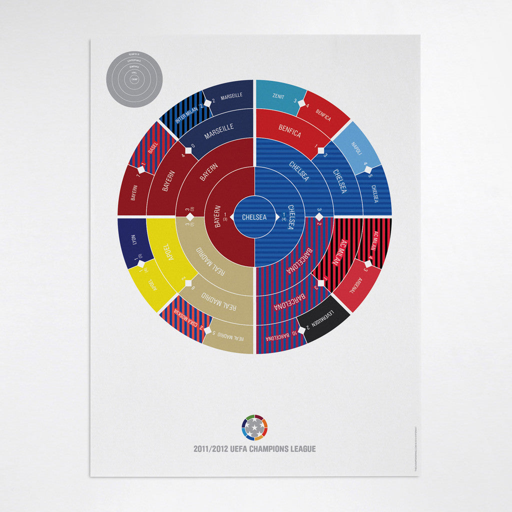 This print captures the entire 2011/2012 Champions League elimination rounds on a beautiful 18" x 24" art print. It's the perfect gift for Chelsea fans.