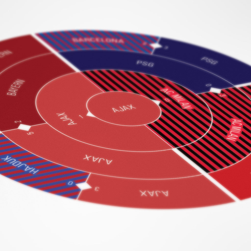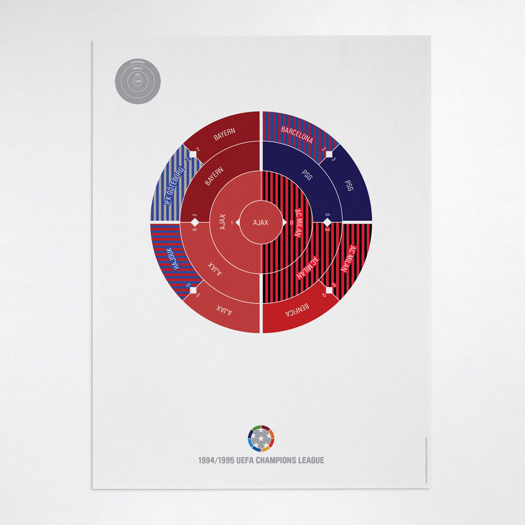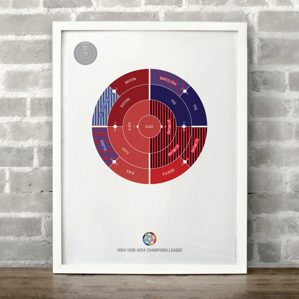 This print captures the entire 1994/1995 Champions League elimination rounds on a beautiful 18" x 24" art print. It's the perfect gift for Ajax fans.