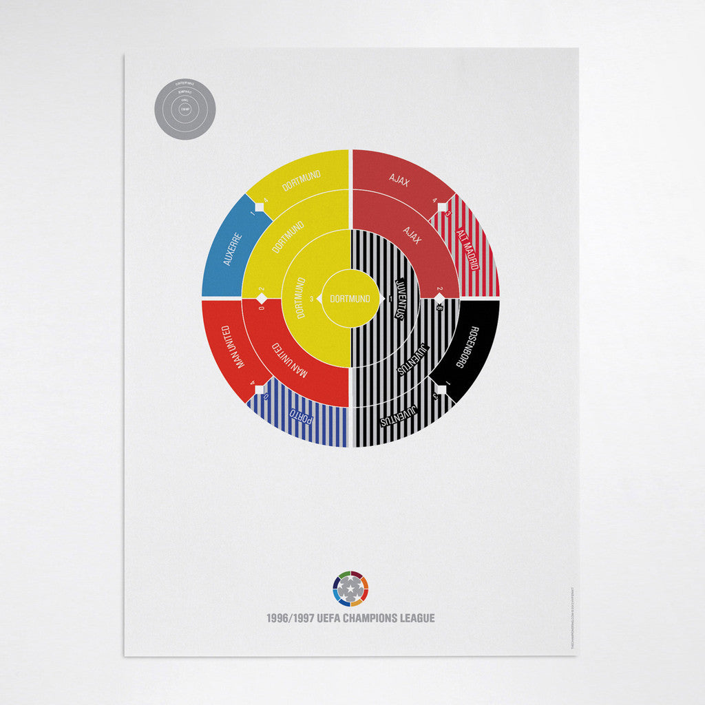 This print captures the entire 1996/1997 Champions League elimination rounds on a beautiful 18" x 24" art print. It's the perfect gift for Dortmund fans.