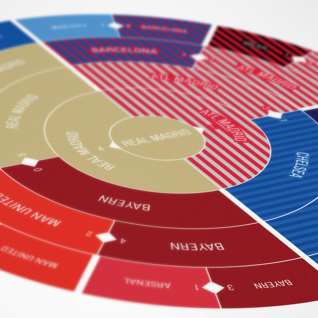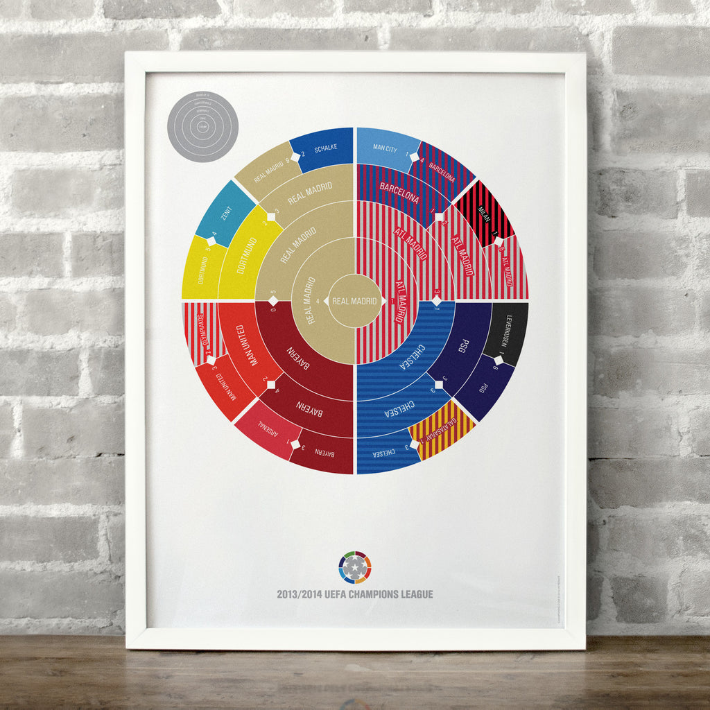 This print captures the entire 2013/2014 Champions League elimination rounds on a beautiful 18" x 24" art print. It's the perfect gift for Real Madrid fans.