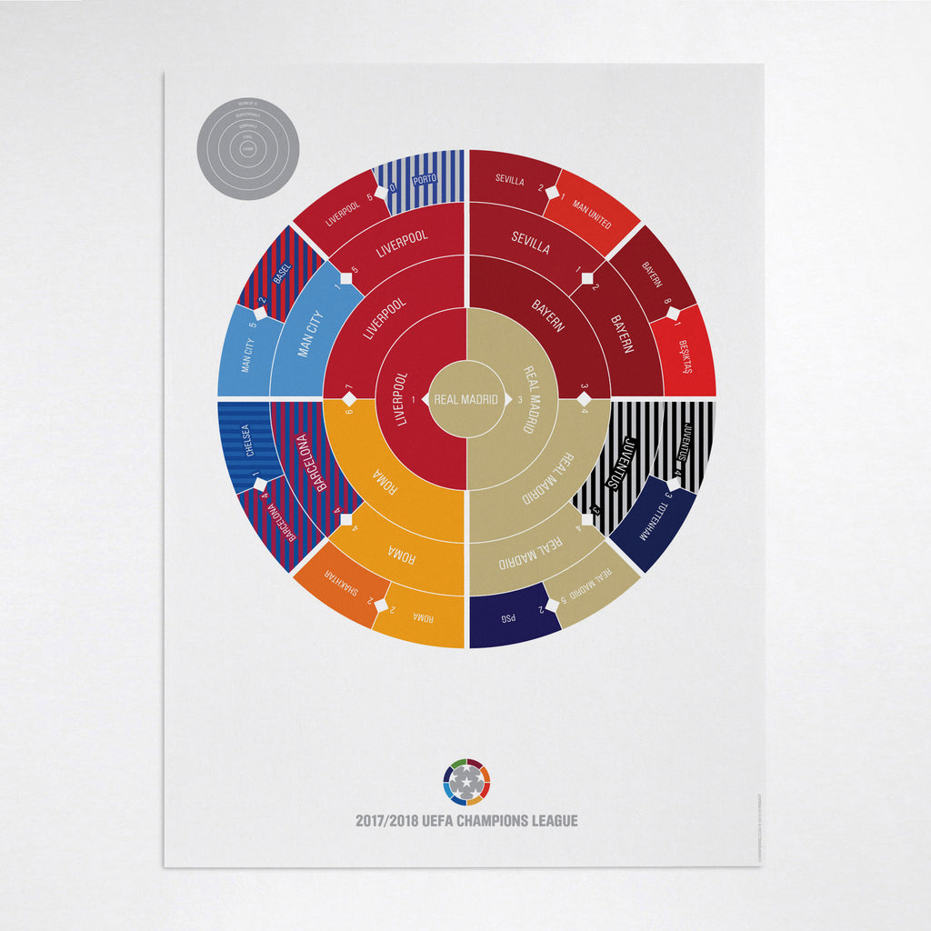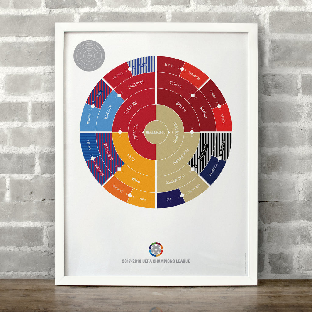This print captures the entire 2017/2018 Champions League elimination rounds on a beautiful 18" x 24" art print. It's the perfect gift for Real Madrid fans.
