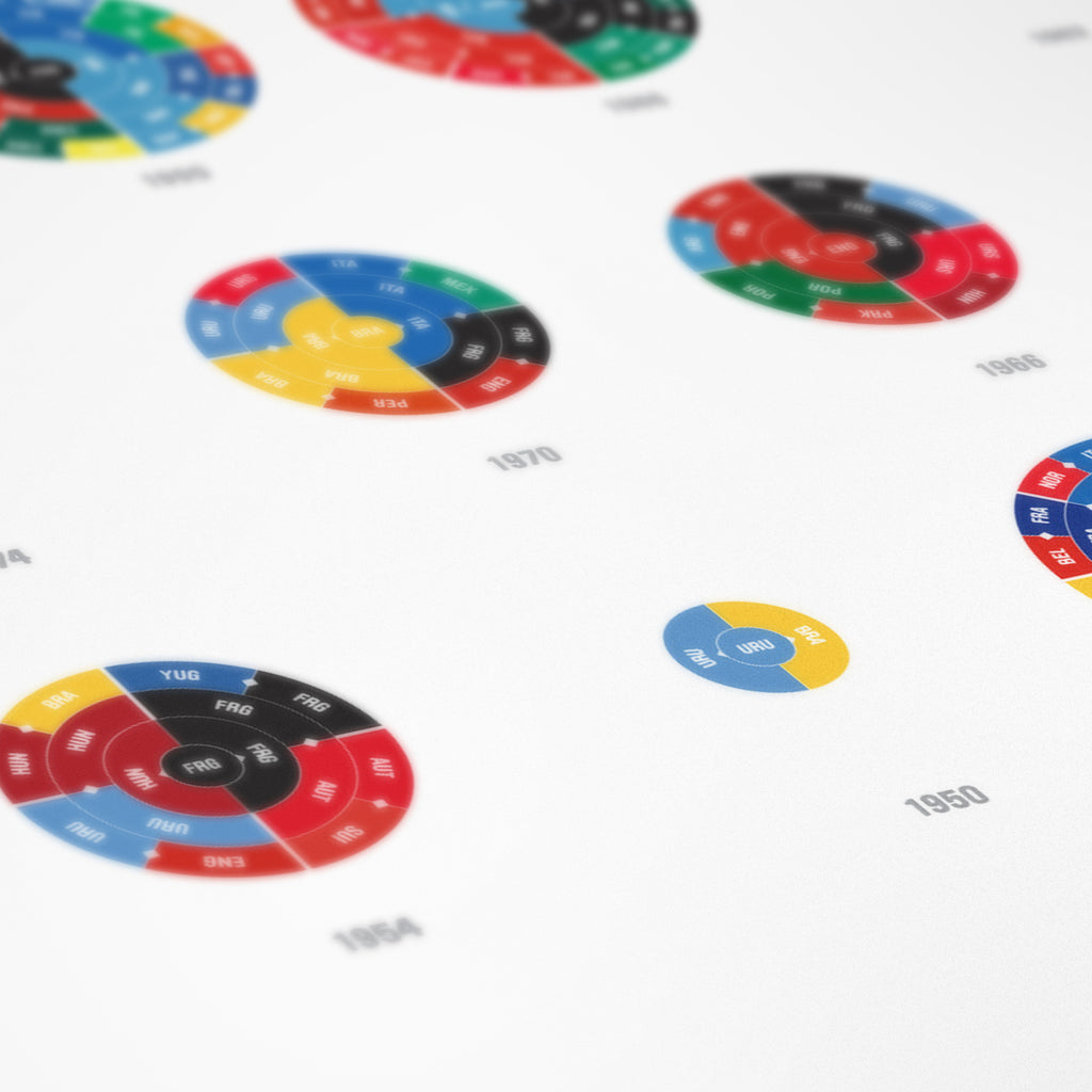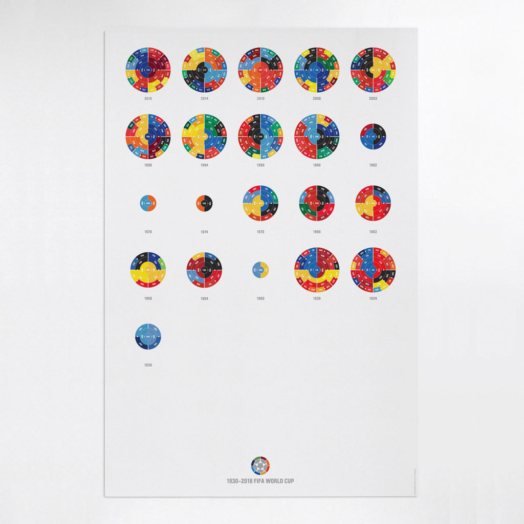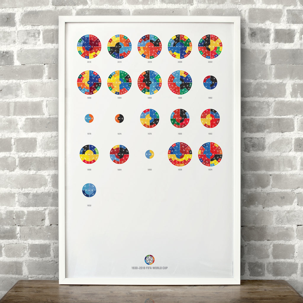 This print captures the entire history of the World Cup at a glance. That's a total of 21 tournament brackets including every World Cup since 1930 on a beautiful 24" x 36" art print. It's the perfect gift for the ultimate soccer fan.