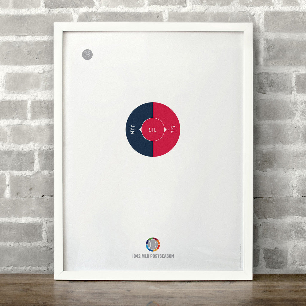 This print captures the entire 1942 MLB playoffs on a beautiful 18" x 24" art print. It's the perfect gift for St. Louis fans.