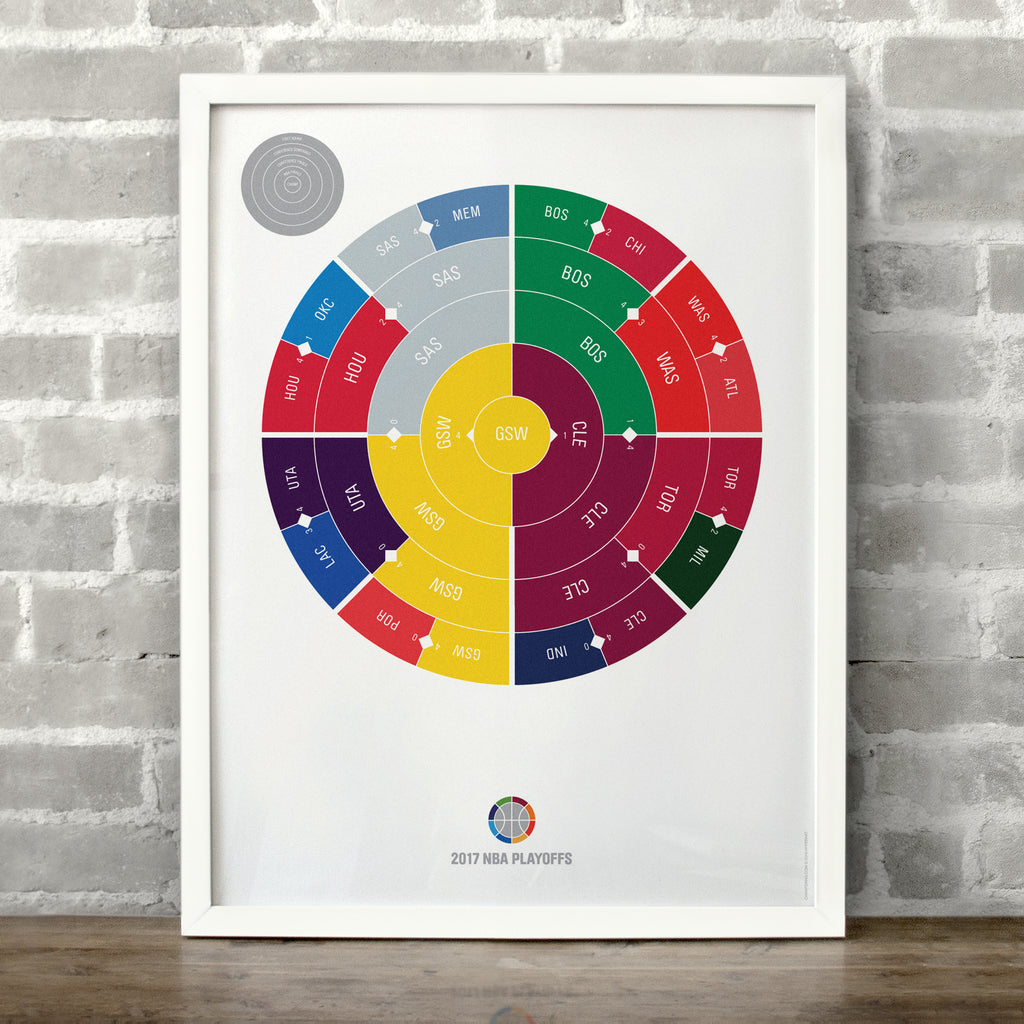 This print captures the entire 2017 NBA playoffs on a beautiful 18" x 24" art print. It's the perfect gift for Golden State Warriors.