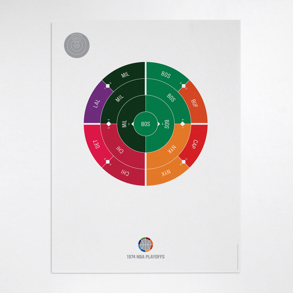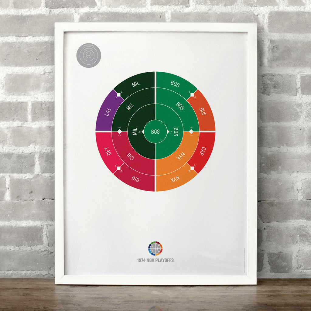 This print captures the entire 1974 NBA playoffs on a beautiful 18" x 24" art print. It's the perfect gift for Boston fans.