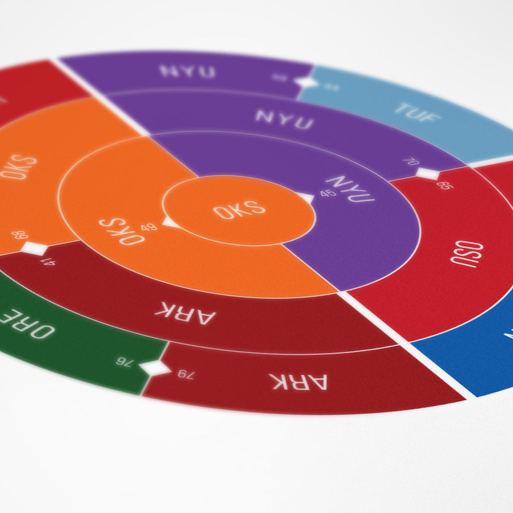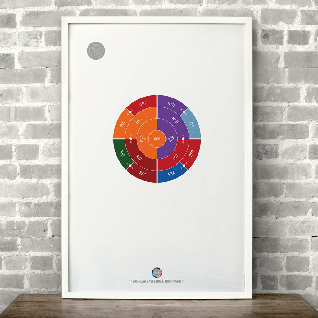 This print captures the entire 1945 men's NCAA basketball tournament on a beautiful 24" x 36" art print. It's the perfect gift for Oklahoma A&M fans.