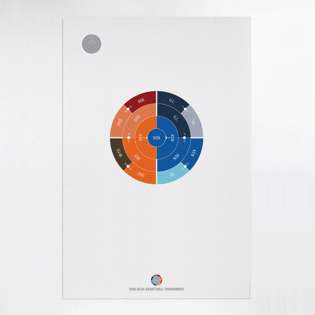 This print captures the entire 1949 men's NCAA basketball tournament on a beautiful 24" x 36" art print. It's the perfect gift for Kentucky fans.