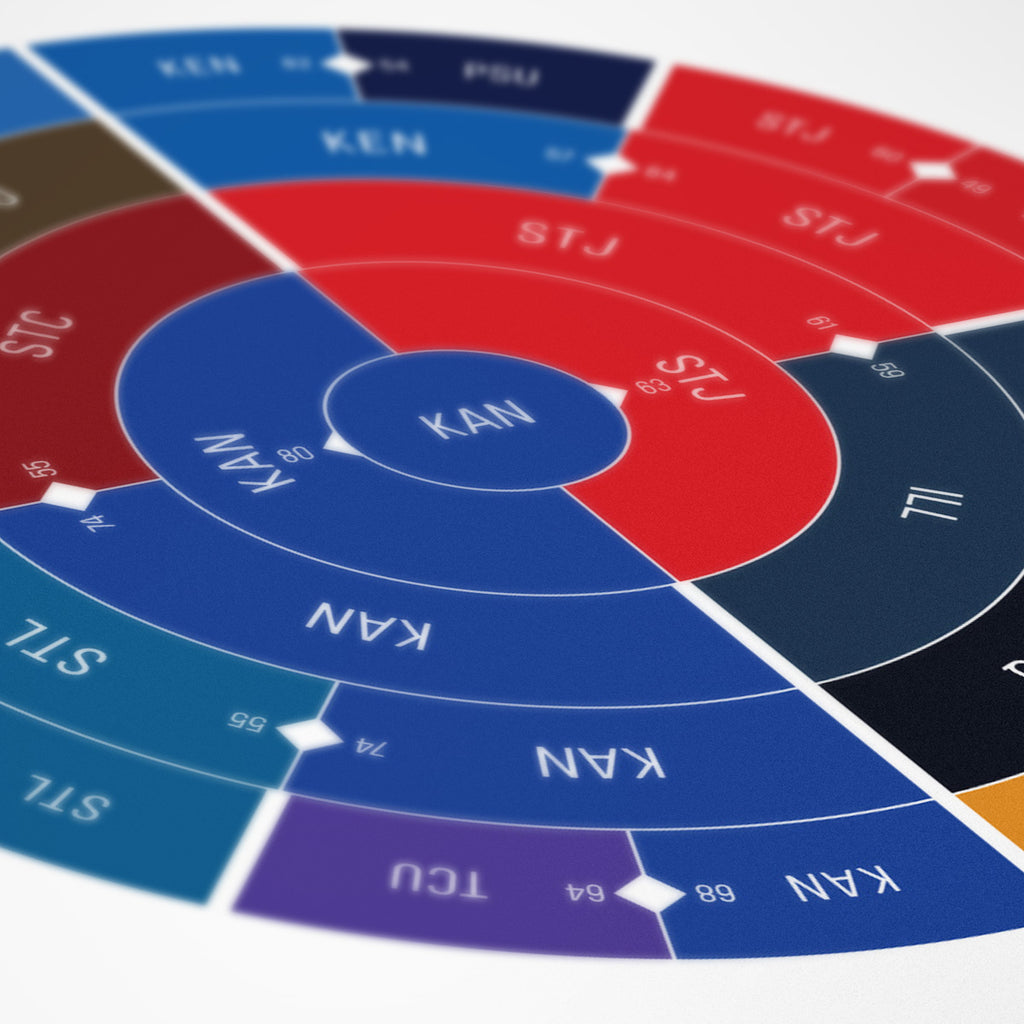 This print captures the entire 1952 men's NCAA basketball tournament on a beautiful 24" x 36" art print. It's the perfect gift for Kansas fans.