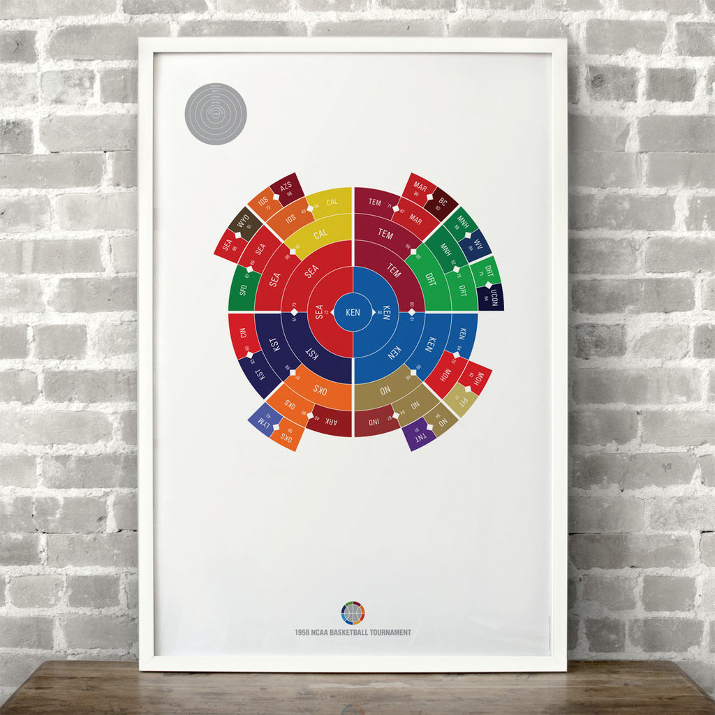 This print captures the entire 1958 men's NCAA basketball tournament on a beautiful 24" x 36" art print. It's the perfect gift for Kentucky fans.