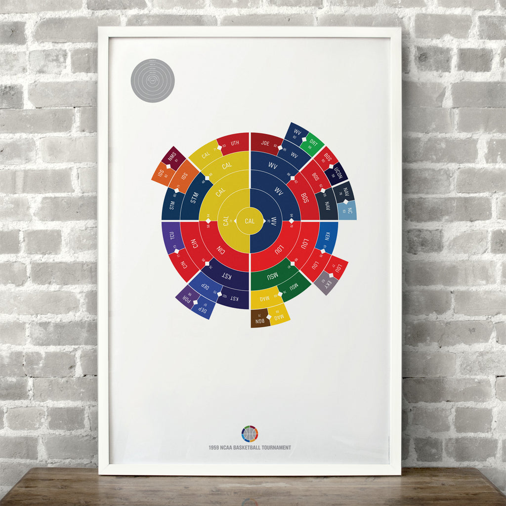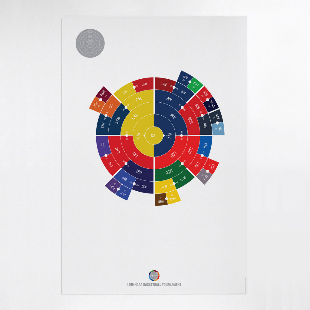 This print captures the entire 1959 men's NCAA basketball tournament on a beautiful 24" x 36" art print. It's the perfect gift for California fans.