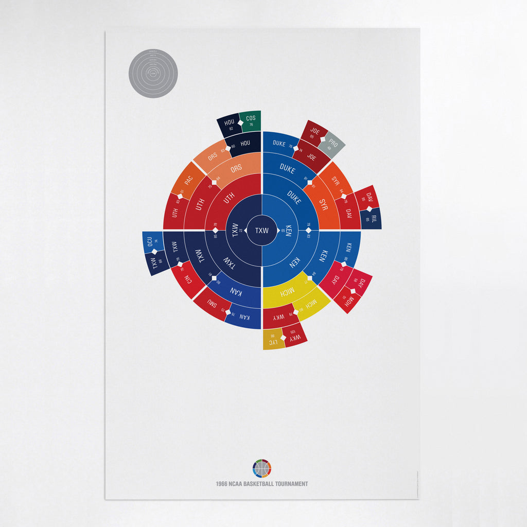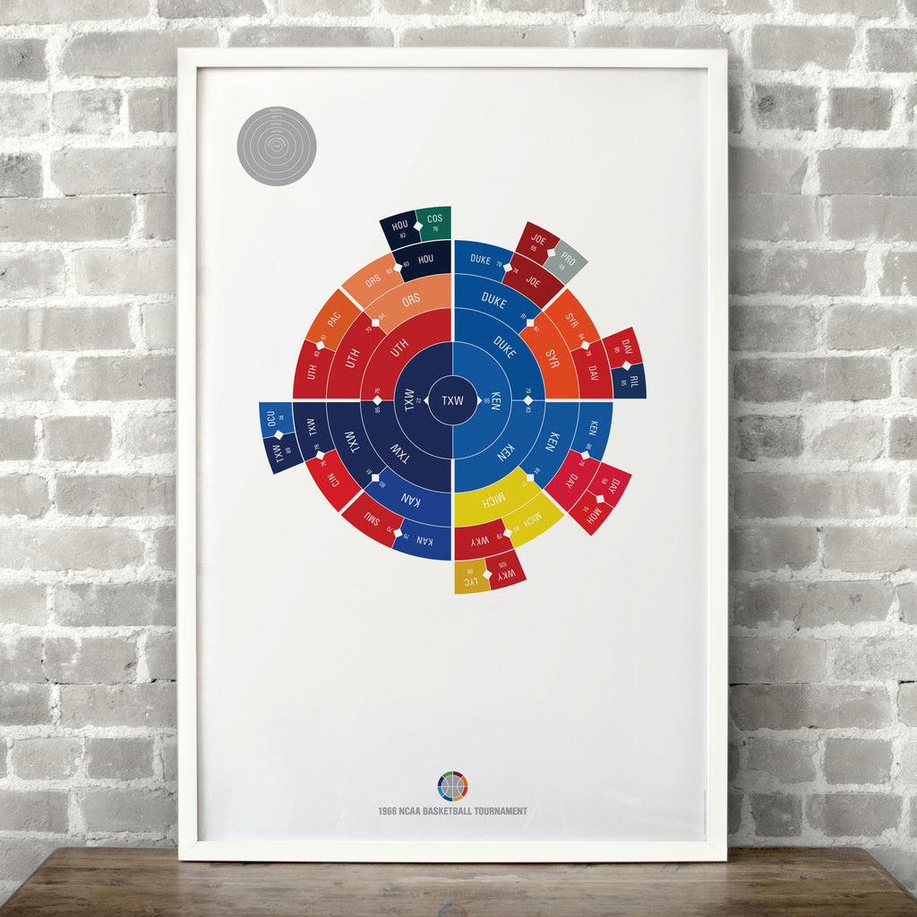 This print captures the entire 1966 men's NCAA basketball tournament on a beautiful 24" x 36" art print. It's the perfect gift for Texas Western fans.
