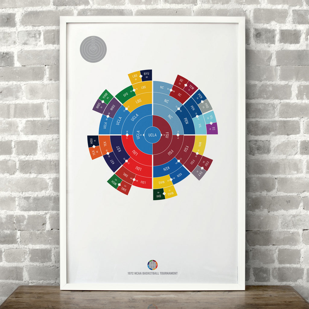 This print captures the entire 1972 men's NCAA basketball tournament on a beautiful 24" x 36" art print. It's the perfect gift for UCLA fans.