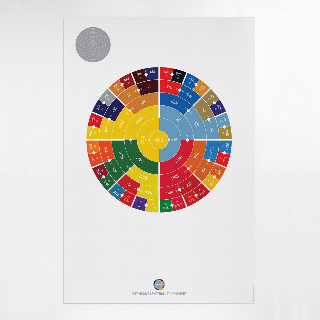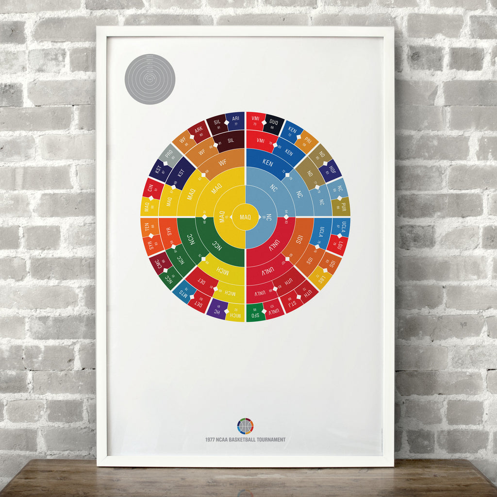 This print captures the entire 1977 men's NCAA basketball tournament on a beautiful 24" x 36" art print. It's the perfect gift for Marquette fans.