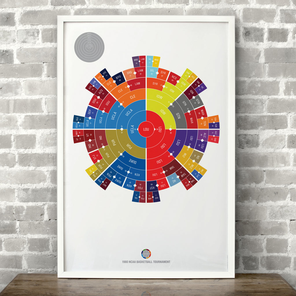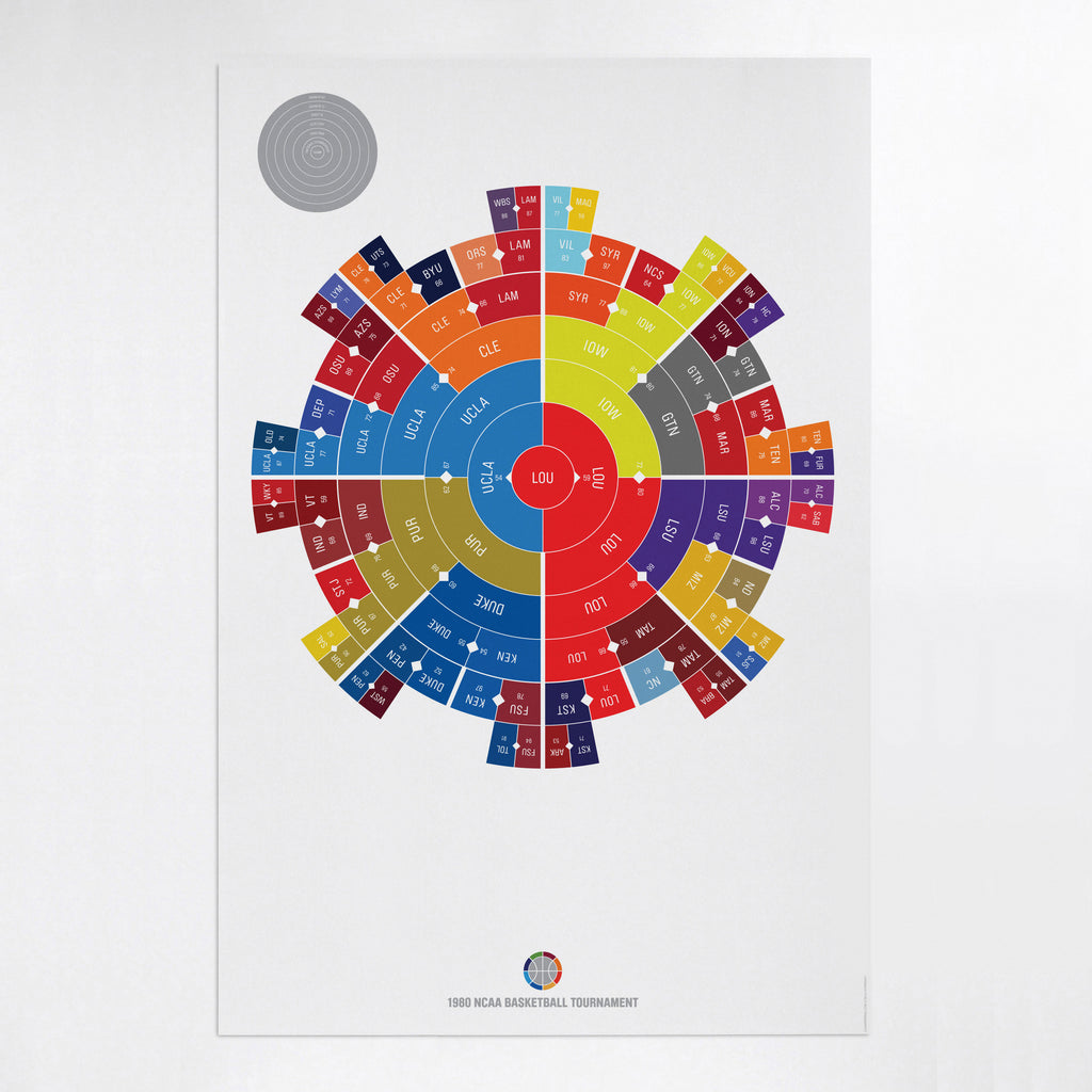 This print captures the entire 1980 men's NCAA basketball tournament on a beautiful 24" x 36" art print. It's the perfect gift for Louisville fans.