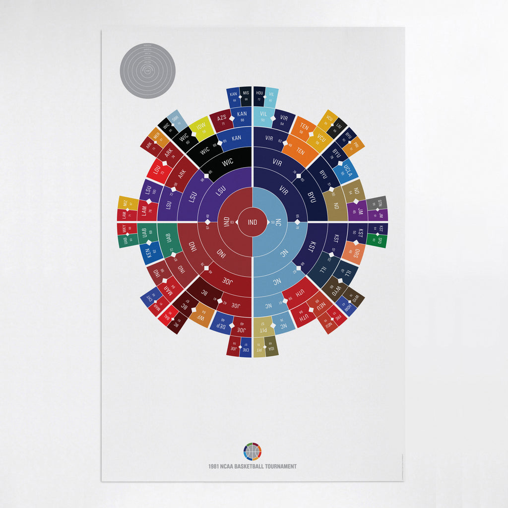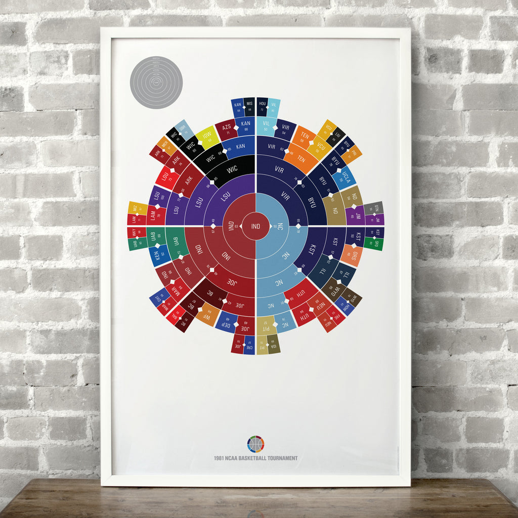 This print captures the entire 1981 men's NCAA basketball tournament on a beautiful 24" x 36" art print. It's the perfect gift for Indiana fans.