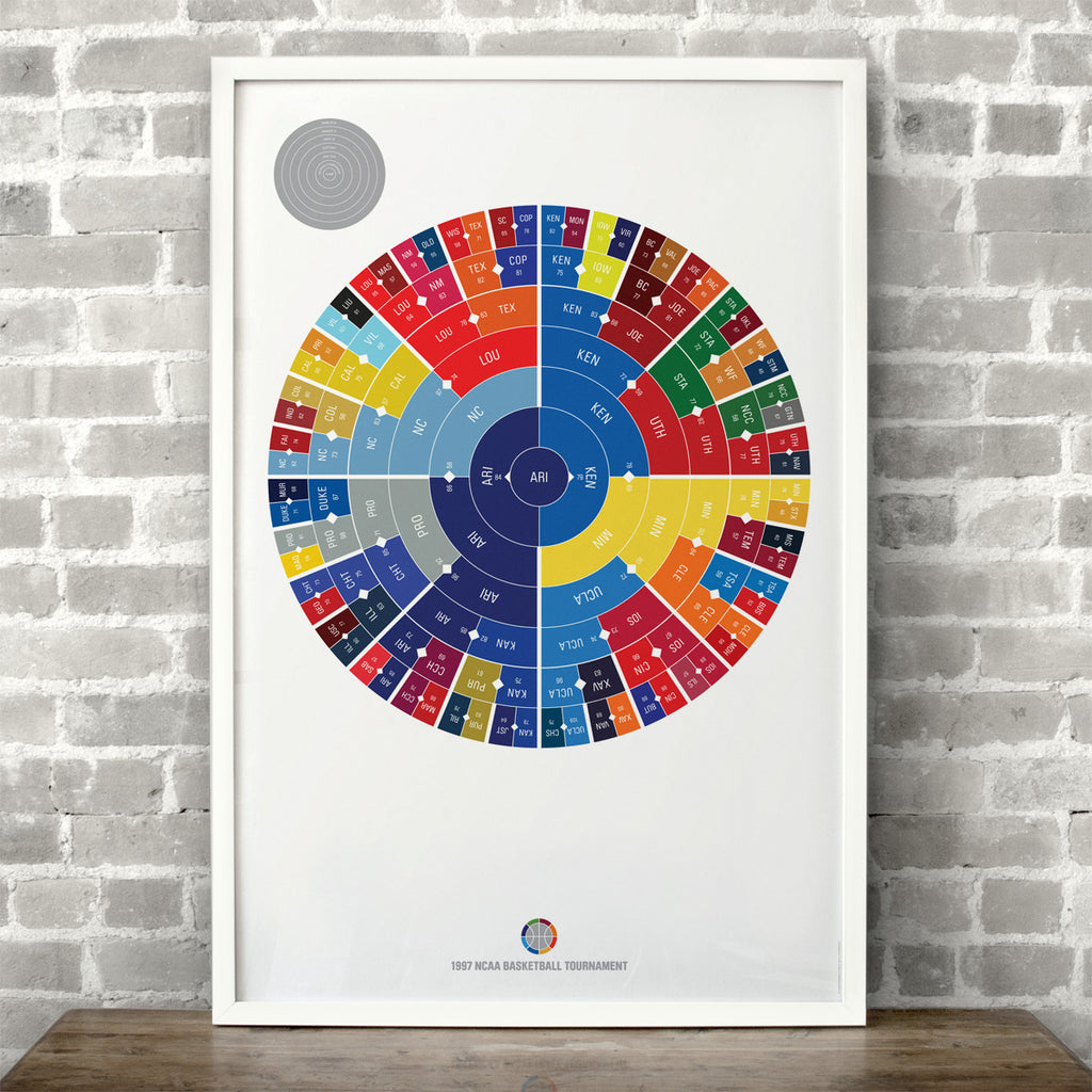 This print captures the entire 1997 men's NCAA basketball tournament on a beautiful 24" x 36" art print. It's the perfect gift for Arizona fans.