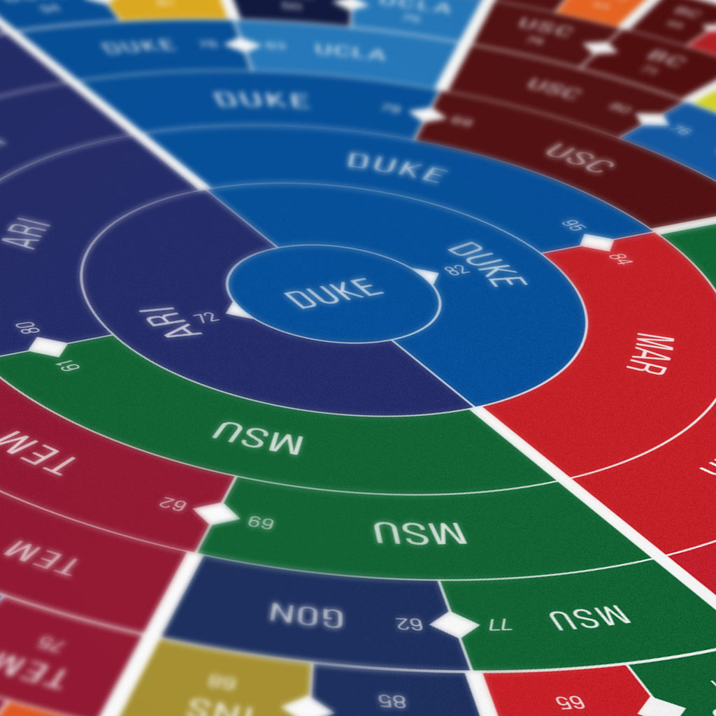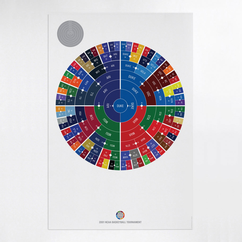 This print captures the entire 2001 men's NCAA basketball tournament on a beautiful 24" x 36" art print. It's the perfect gift for Duke fans.