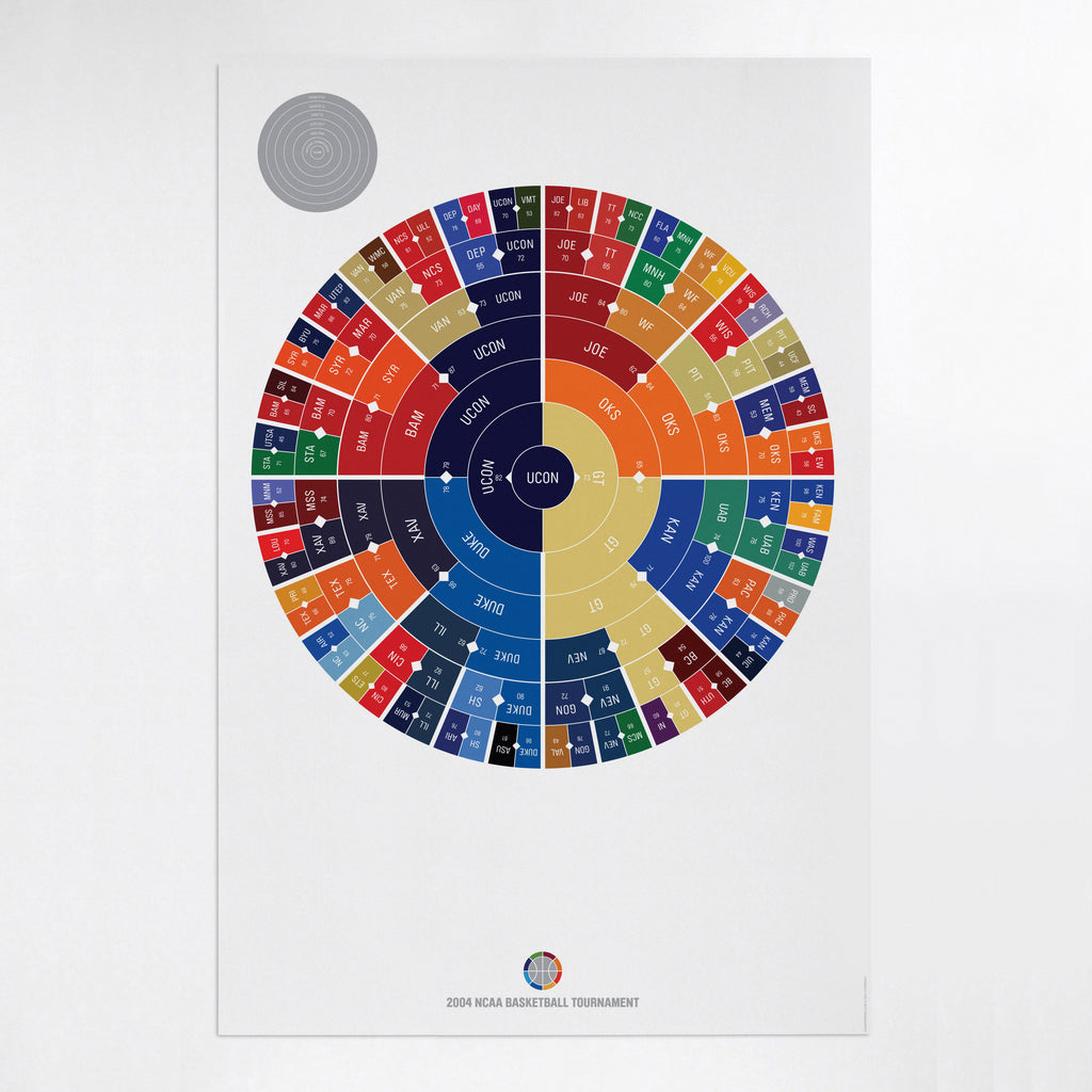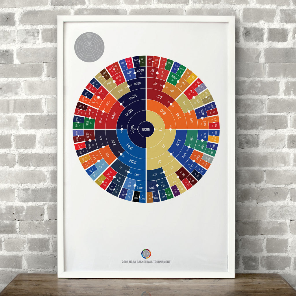 This print captures the entire 2004 men's NCAA basketball tournament on a beautiful 24" x 36" art print. It's the perfect gift for Connecticut fans.