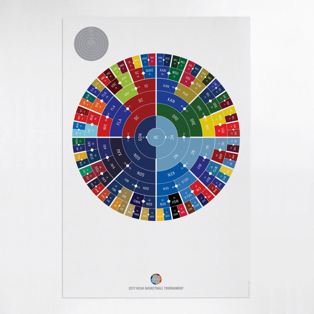 This print captures the entire 2017 men's NCAA basketball tournament on a beautiful 24" x 36" art print. It's the perfect gift for North Carolina fans.