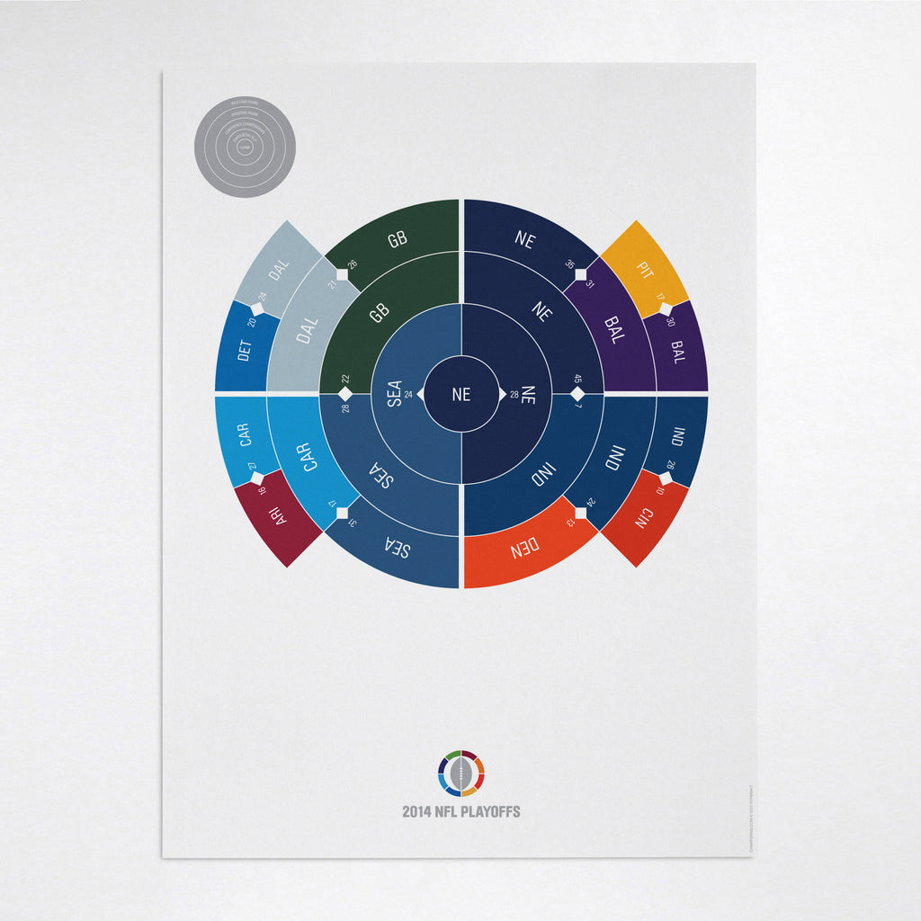 This print captures the entire 2014 NFL playoffs on a beautiful 18" x 24" art print. It's the perfect gift for New England fans.