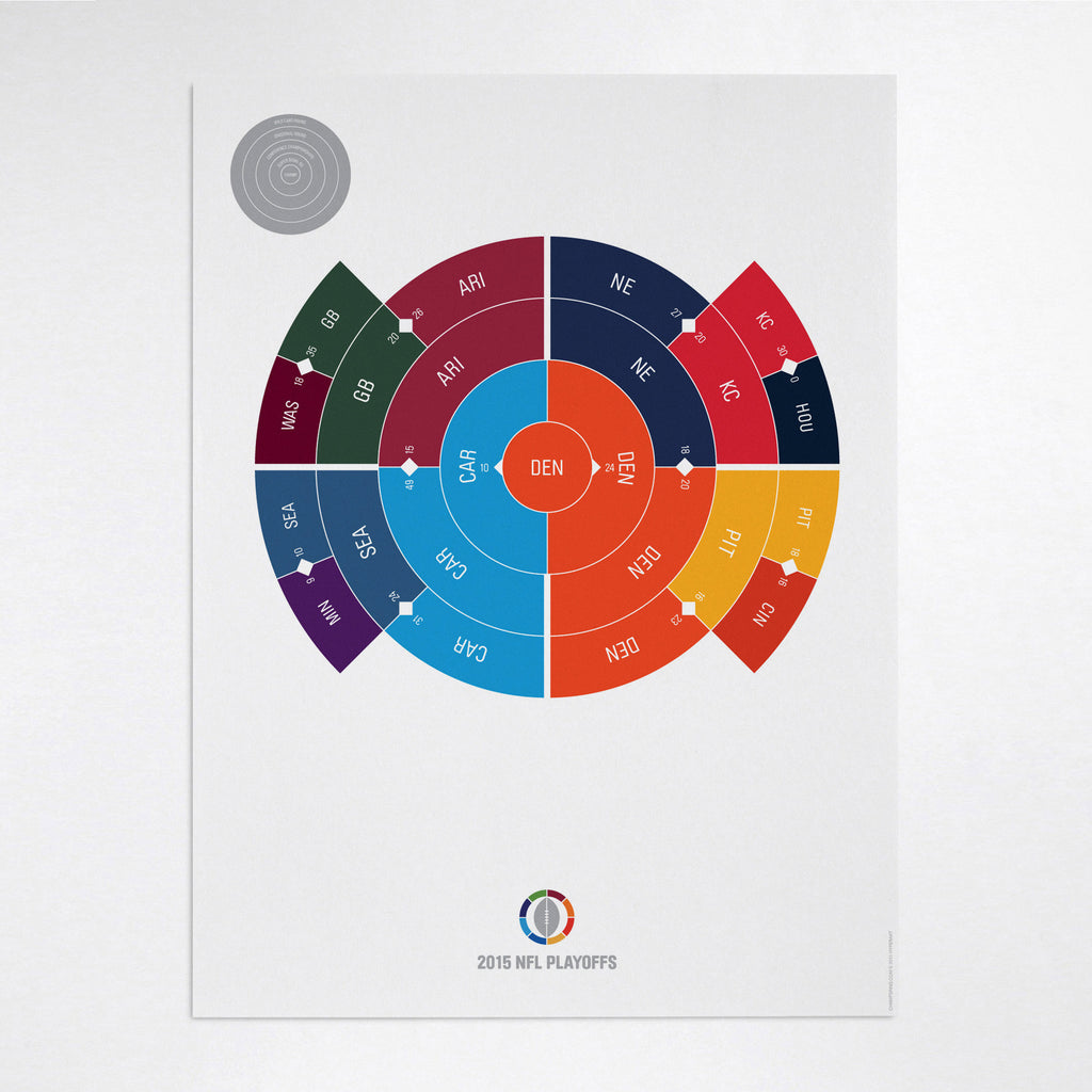 This print captures the entire 2015 NFL playoffs on a beautiful 18" x 24" art print. It's the perfect gift for Denver Broncos fans.