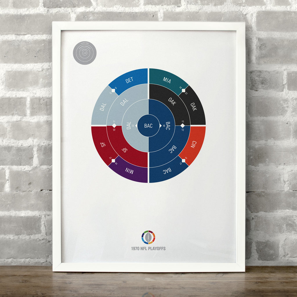 This print captures the entire 1970 NFL playoffs on a beautiful 18" x 24" art print. It's the perfect gift for Baltimore fans.