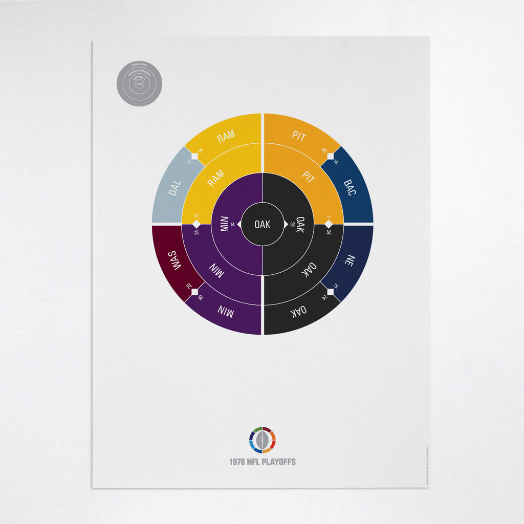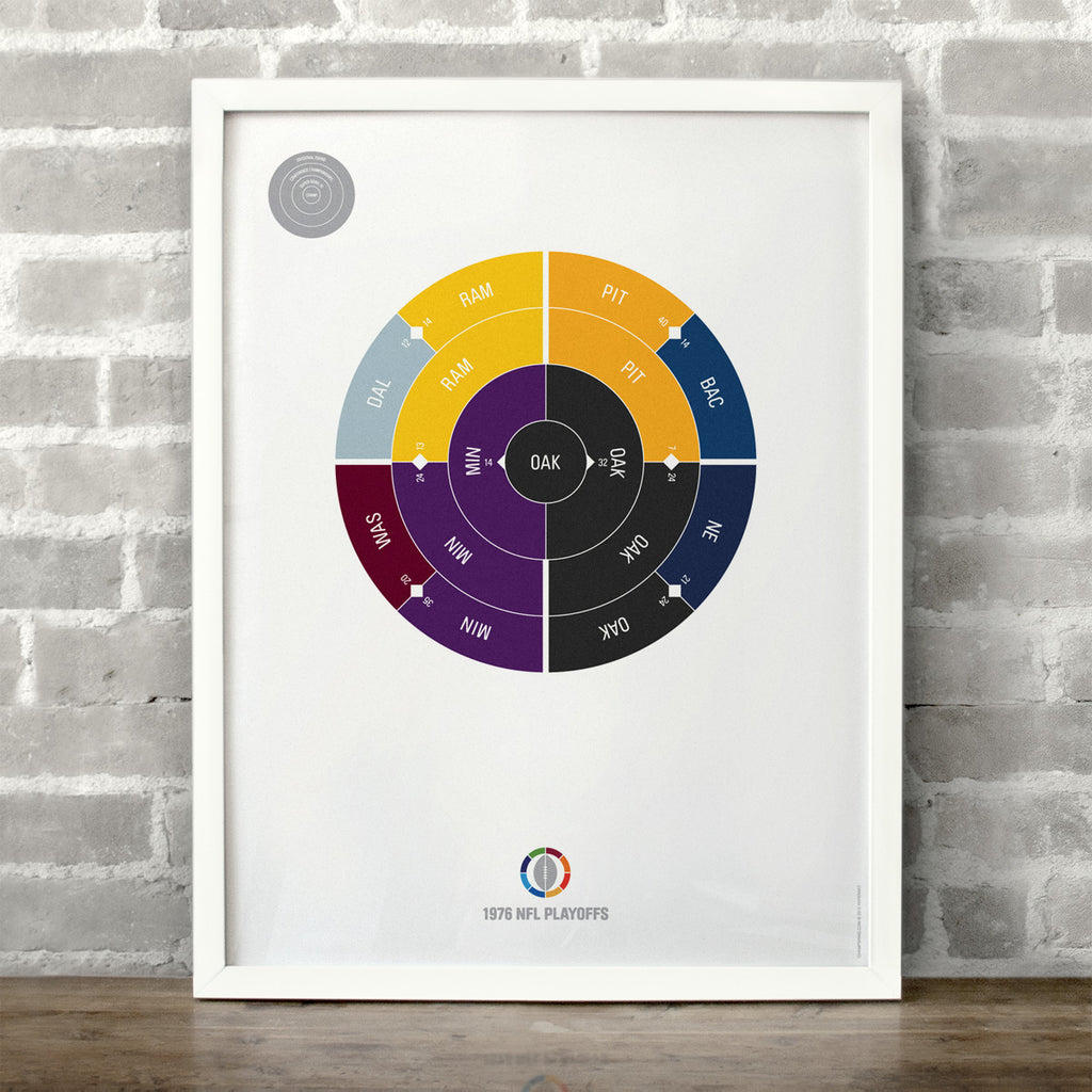 This print captures the entire 1976 NFL playoffs on a beautiful 18" x 24" art print. It's the perfect gift for Oakland fans.