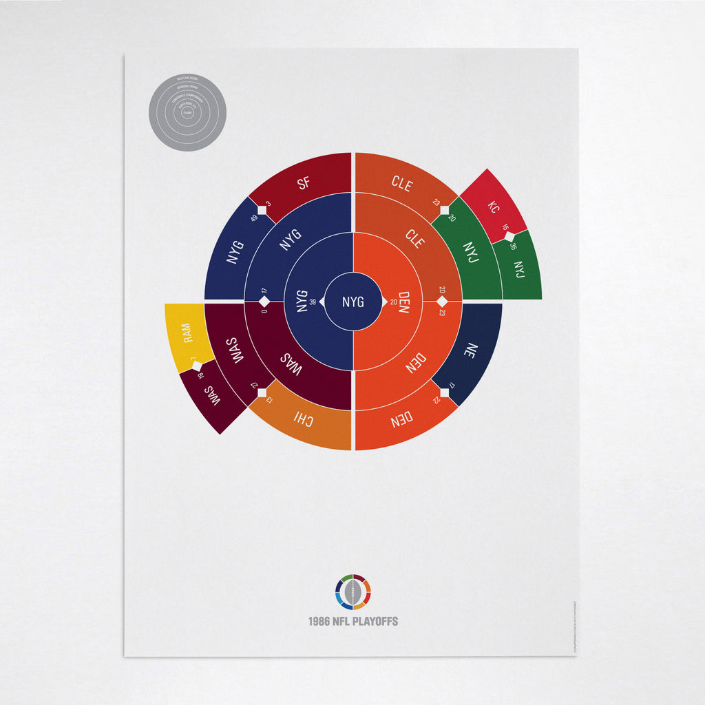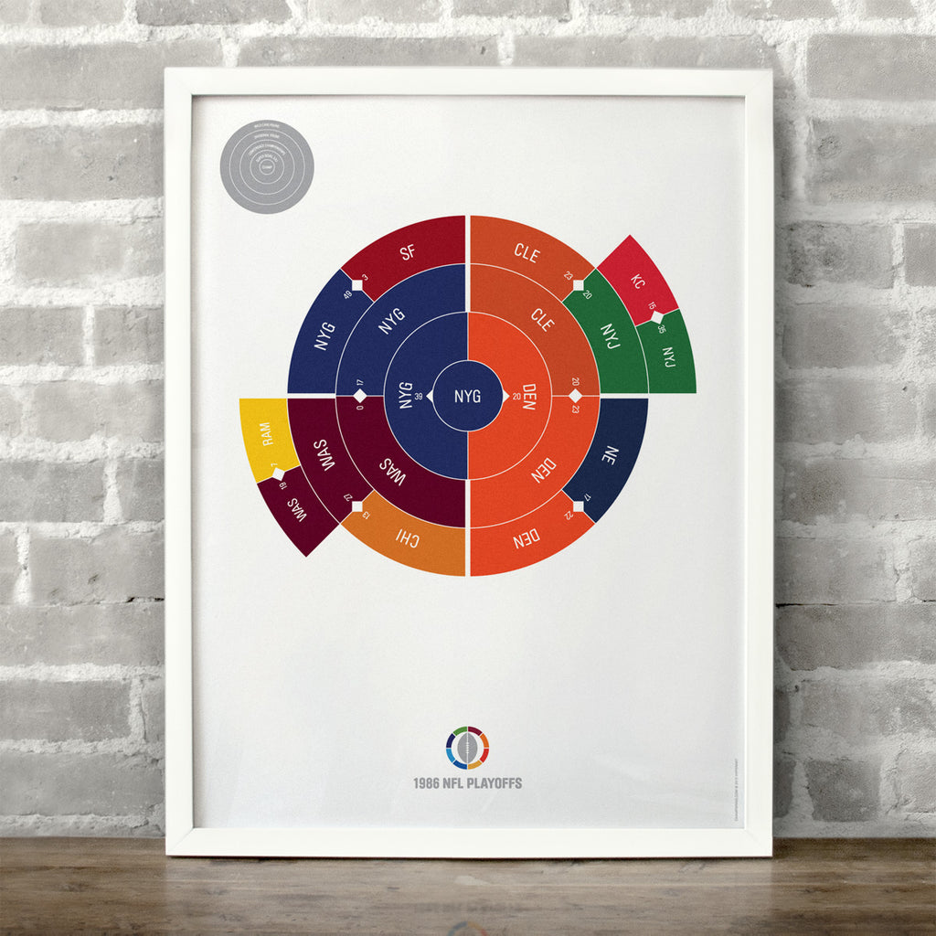 This print captures the entire 1986 NFL playoffs on a beautiful 18" x 24" art print. It's the perfect gift for New York fans.