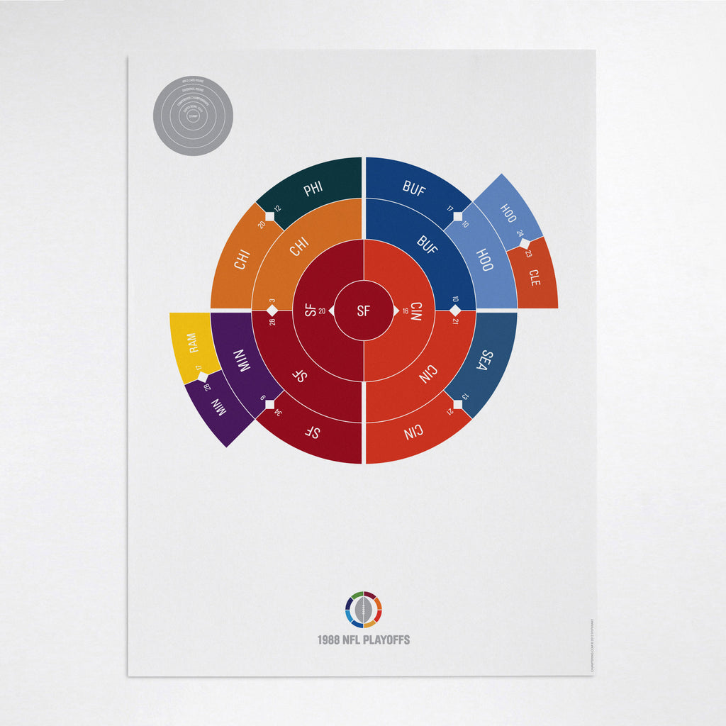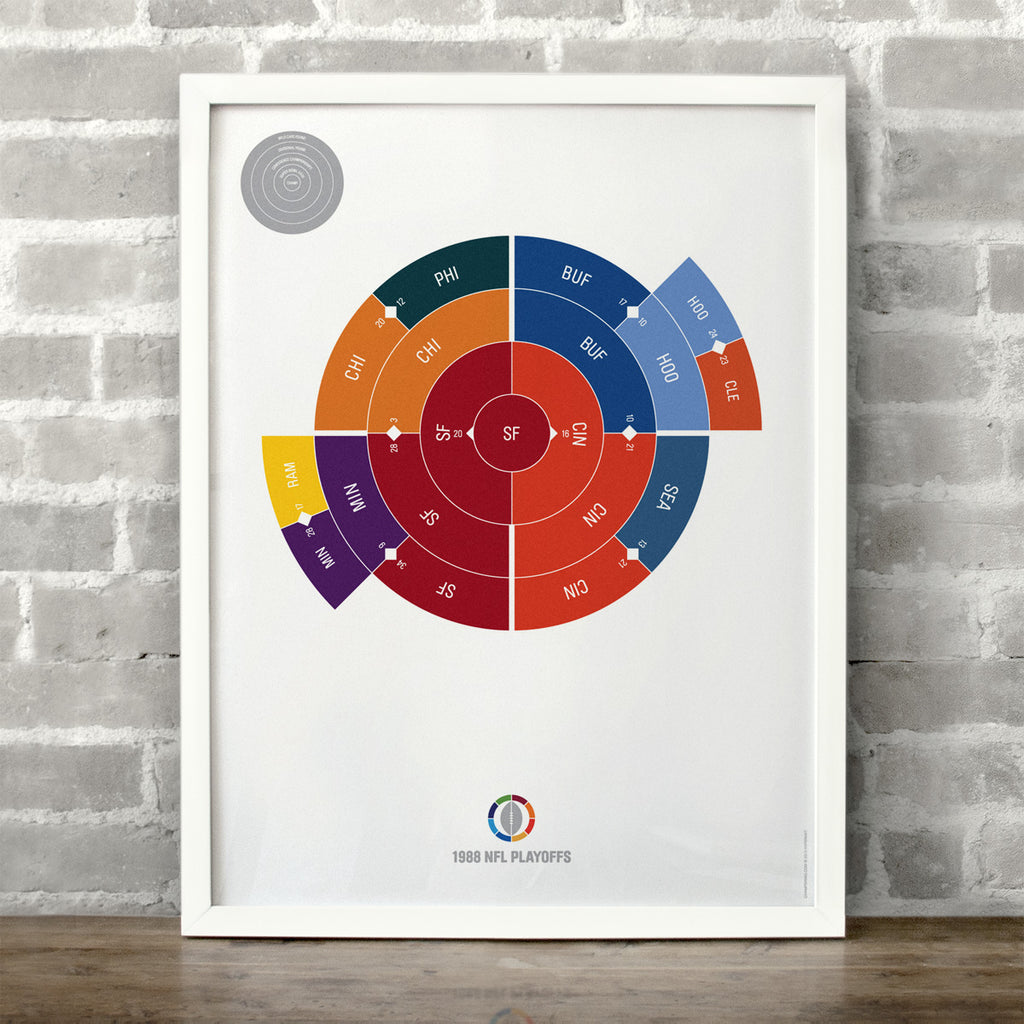 This print captures the entire 1988 NFL playoffs on a beautiful 18" x 24" art print. It's the perfect gift for San Francisco fans.