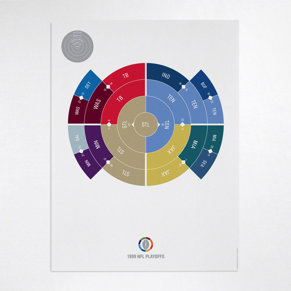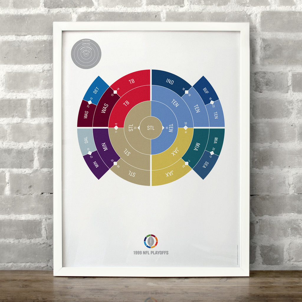 This print captures the entire 1999 NFL playoffs on a beautiful 18" x 24" art print. It's the perfect gift for St.Louis fans.
