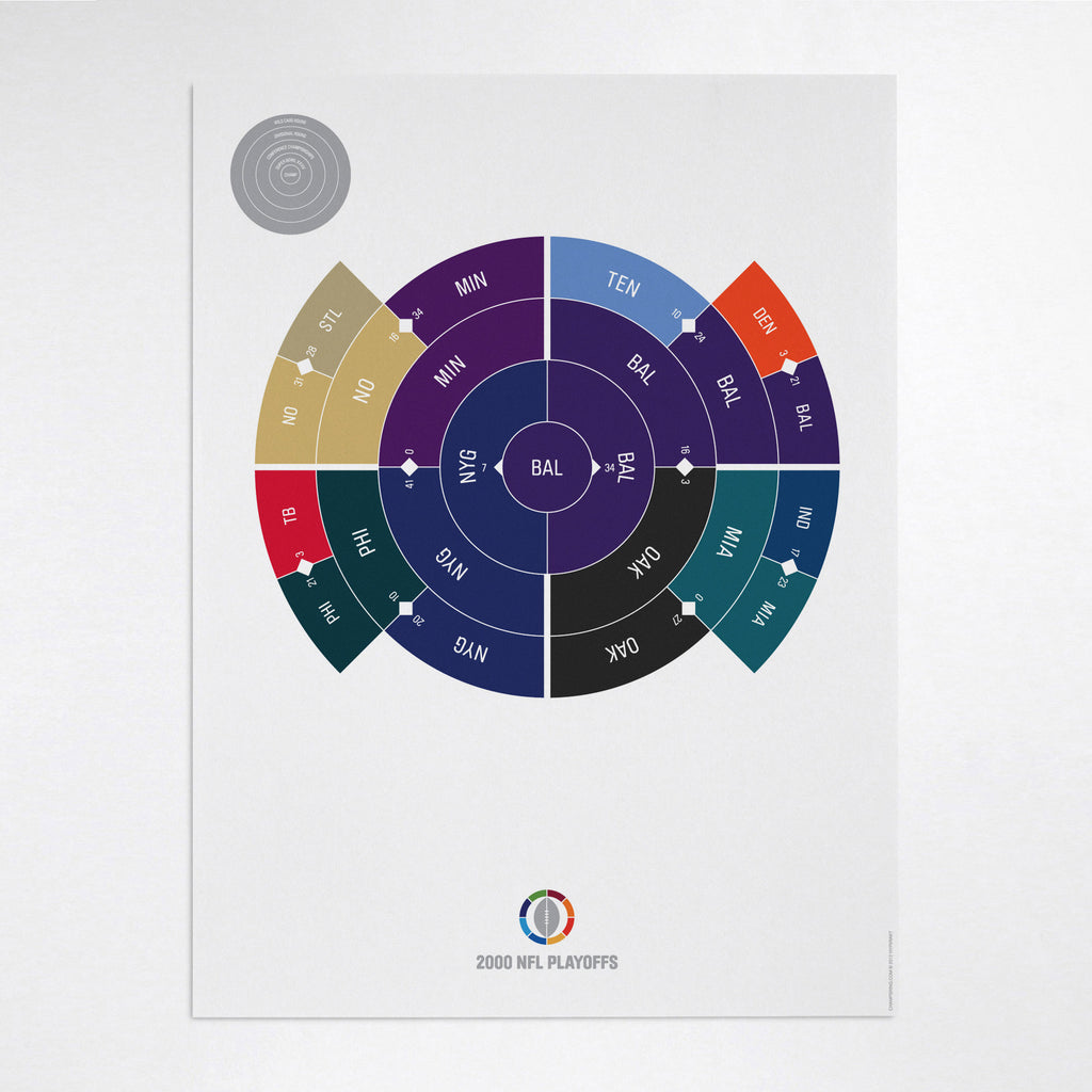 This print captures the entire 2000 NFL playoffs on a beautiful 18" x 24" art print. It's the perfect gift for Baltimore fans.
