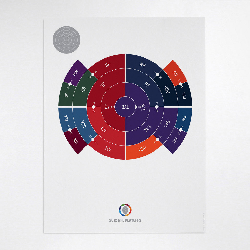 This print captures the entire 2012 NFL playoffs on a beautiful 18" x 24" art print. It's the perfect gift for Baltimore fans.