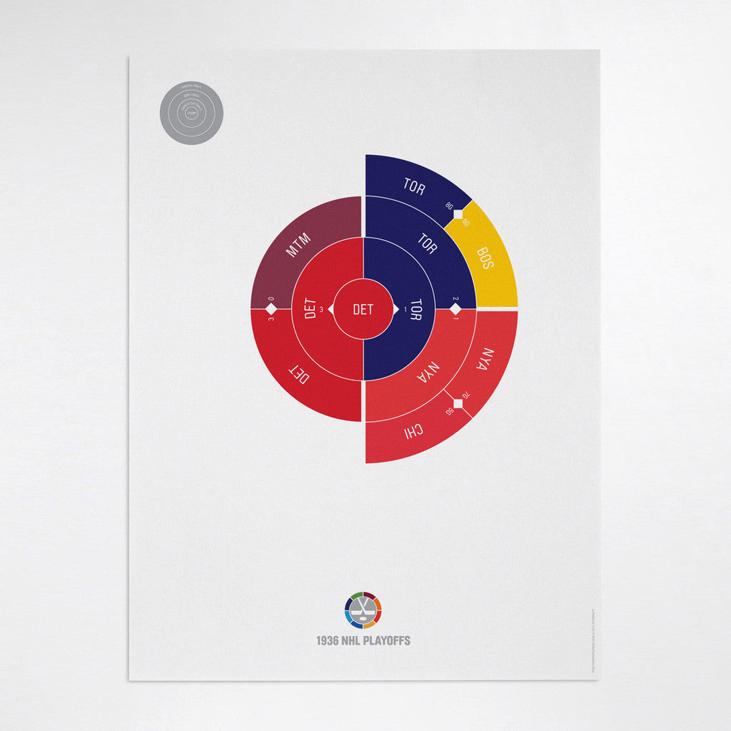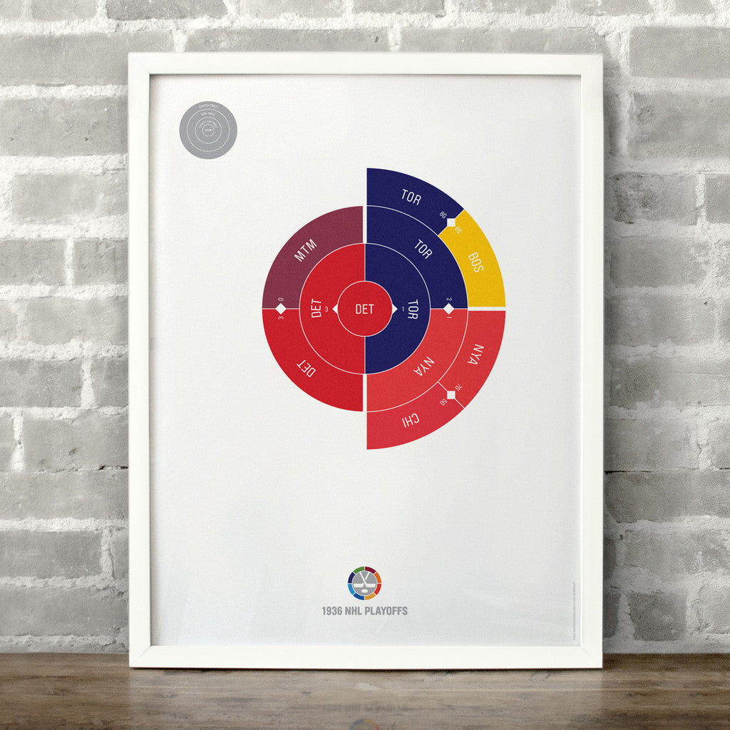This print captures the entire 1936 NHL playoffs on a beautiful 18" x 24" art print. It's the perfect gift for Detroit fans.