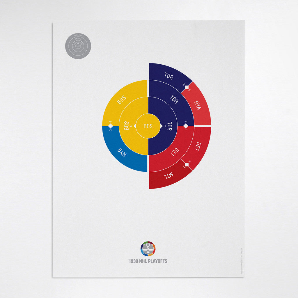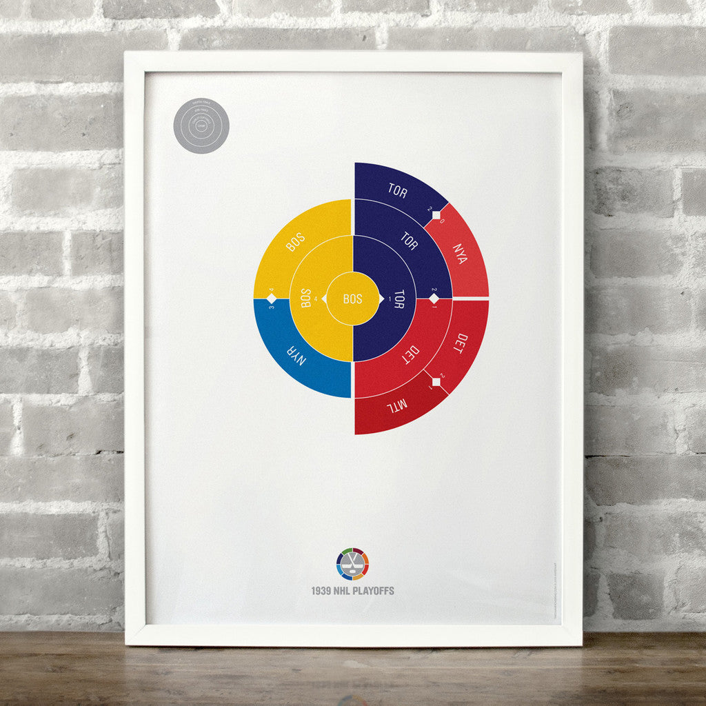 This print captures the entire 1939 NHL playoffs on a beautiful 18" x 24" art print. It's the perfect gift for Boston fans.