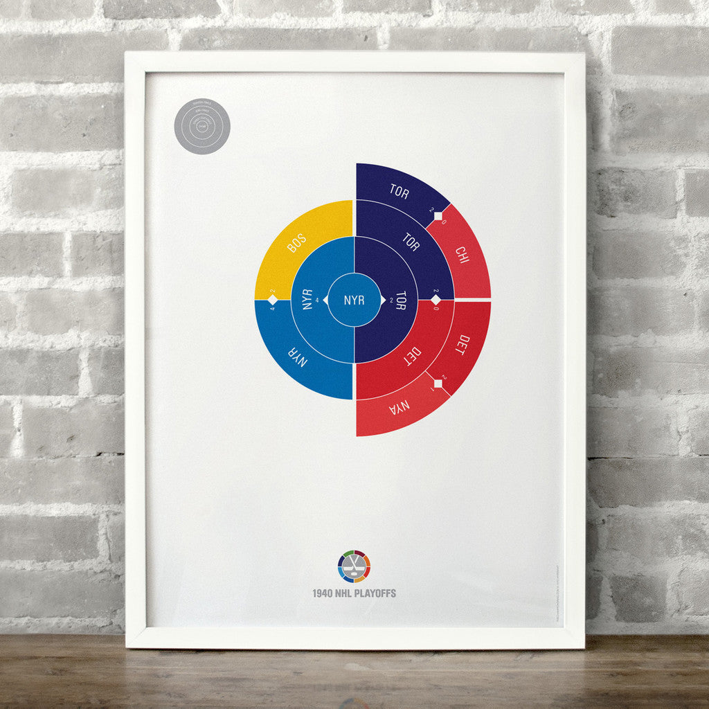 This print captures the entire 1940 NHL playoffs on a beautiful 18" x 24" art print. It's the perfect gift for New York fans.