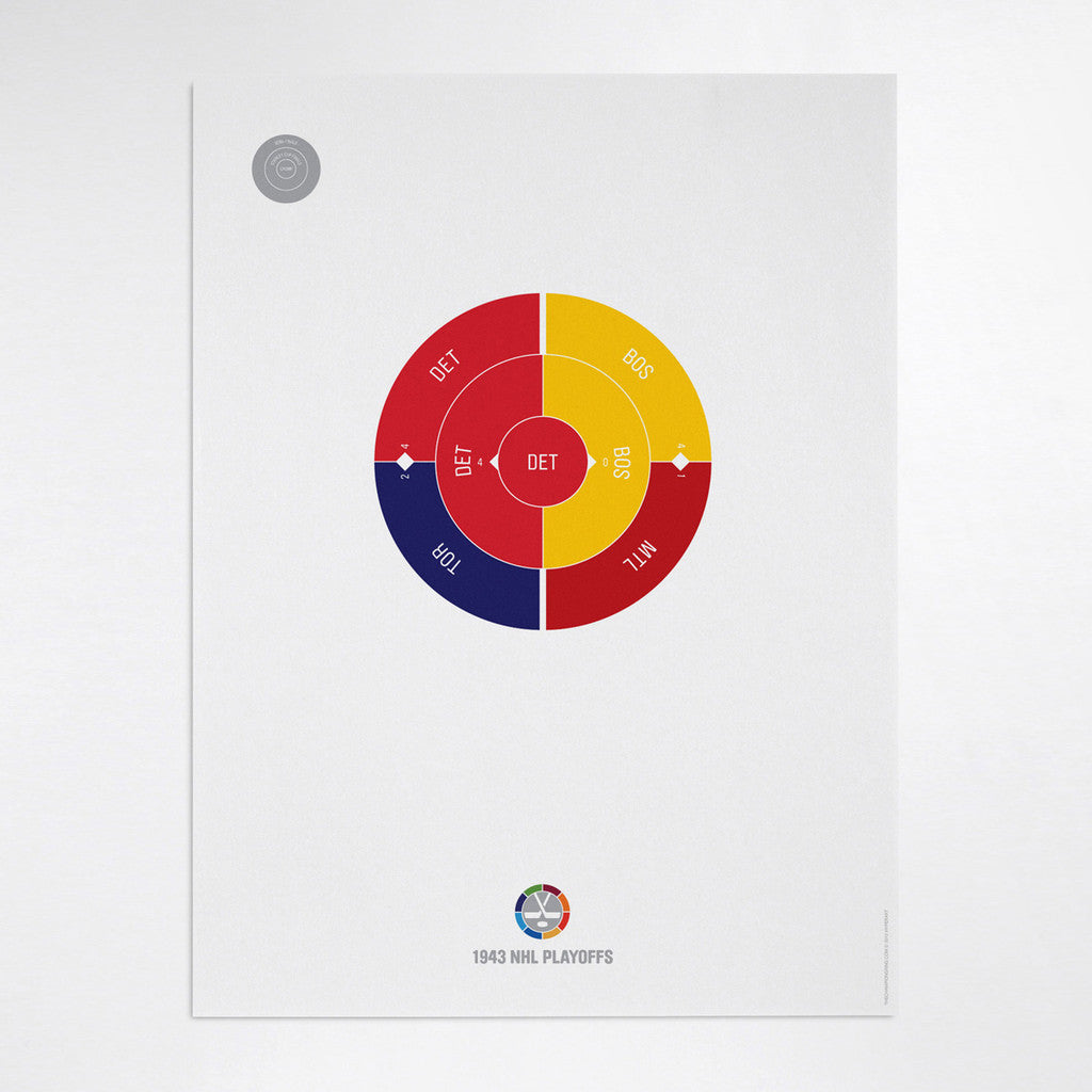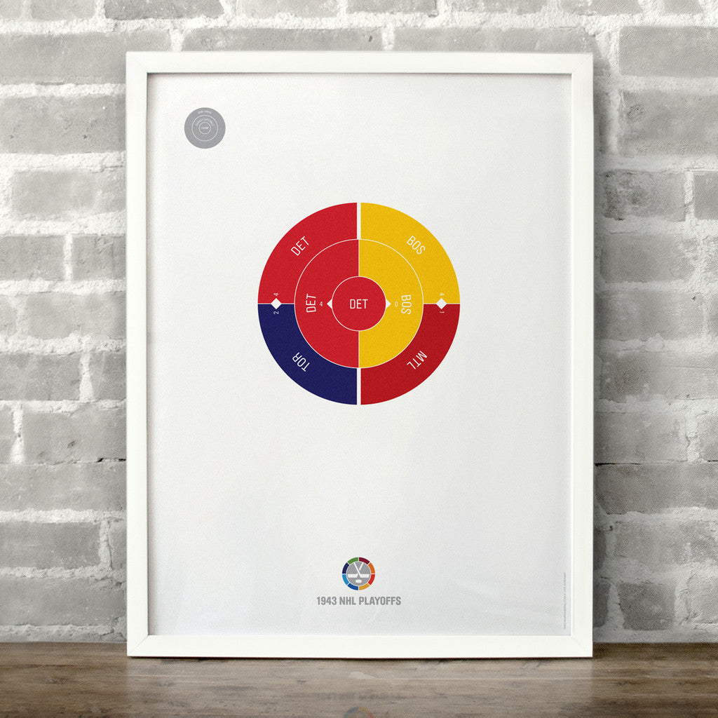 This print captures the entire 1943 NHL playoffs on a beautiful 18" x 24" art print. It's the perfect gift for Detroit fans.
