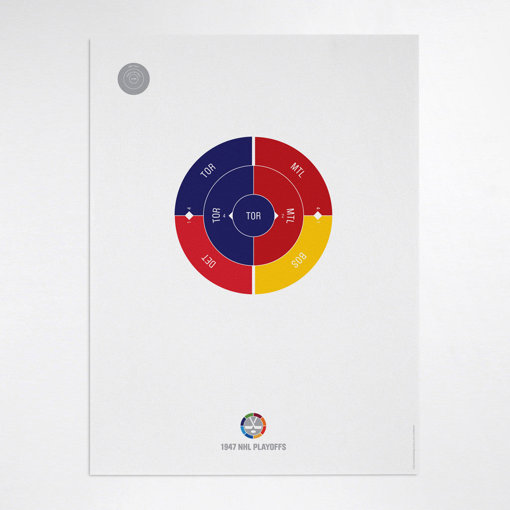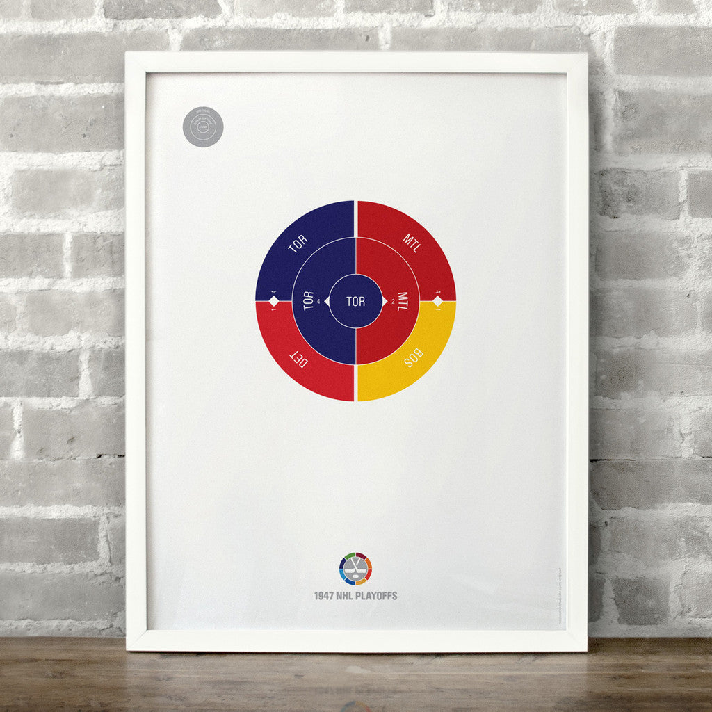 This print captures the entire 1947 NHL playoffs on a beautiful 18" x 24" art print. It's the perfect gift for Toronto fans.