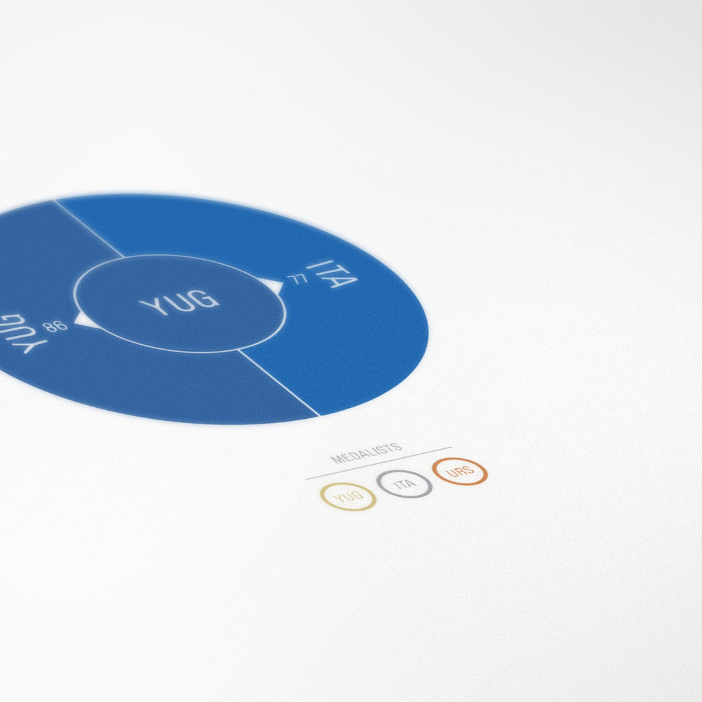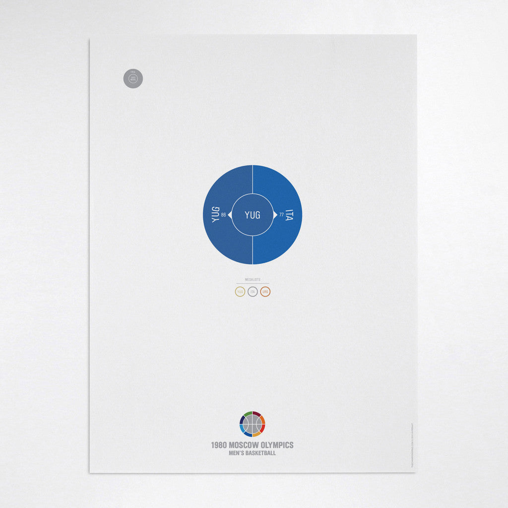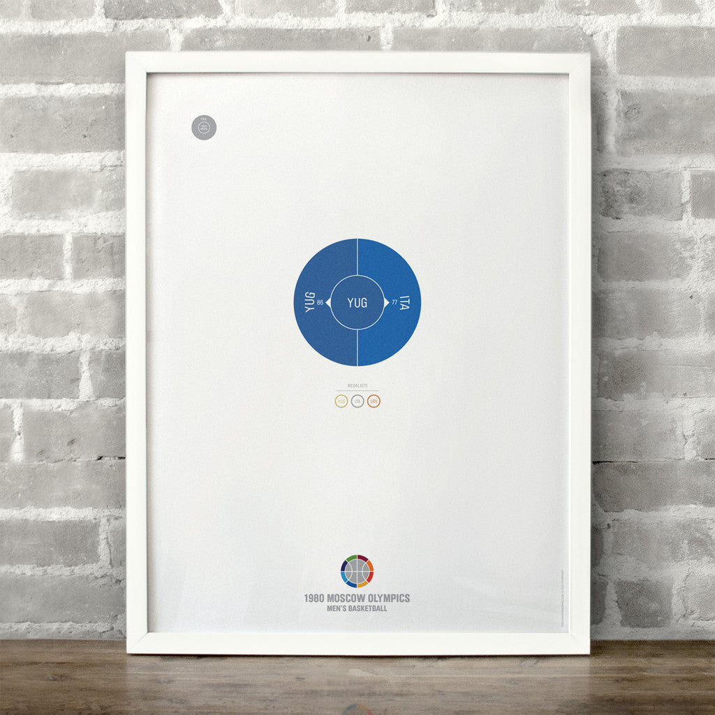 This print captures the entire 1980 men's Olympic basketball elimination rounds on a beautiful 18" x 24" art print. It's the perfect gift for Yugoslavia fans.