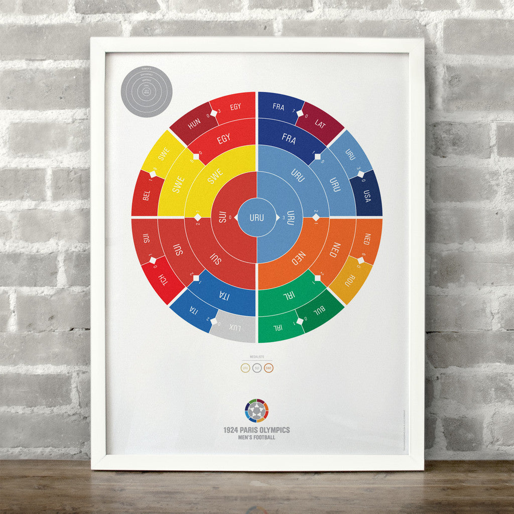 This print captures the entire 1924 men's Olympic football elimination rounds on a beautiful 18" x 24" art print. It's the perfect gift for Uruguay fans.