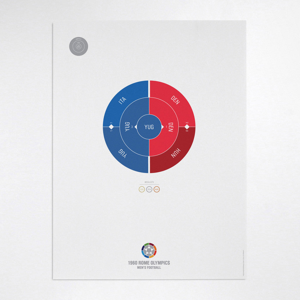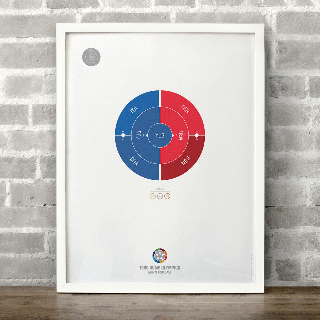 This print captures the entire 1960 men's Olympic football elimination rounds on a beautiful 18" x 24" art print. It's the perfect gift for Yugoslavia fans.