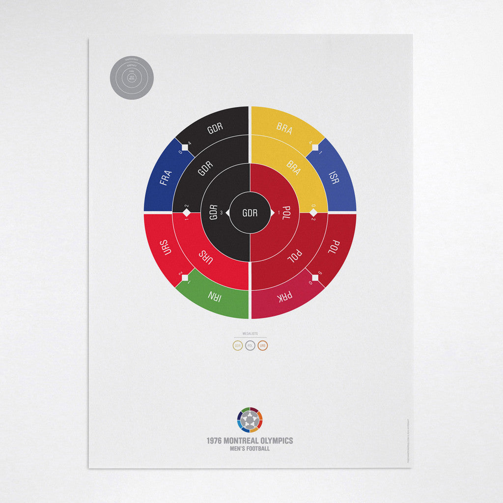 This print captures the entire 1976 men's Olympic football elimination rounds on a beautiful 18" x 24" art print. It's the perfect gift for Germany fans.