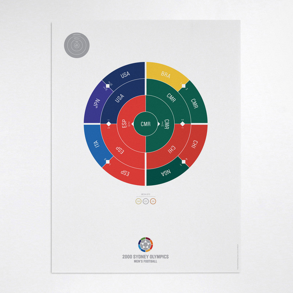 This print captures the entire 2000 men's Olympic football elimination rounds on a beautiful 18" x 24" art print. It's the perfect gift for Cameroon fans.