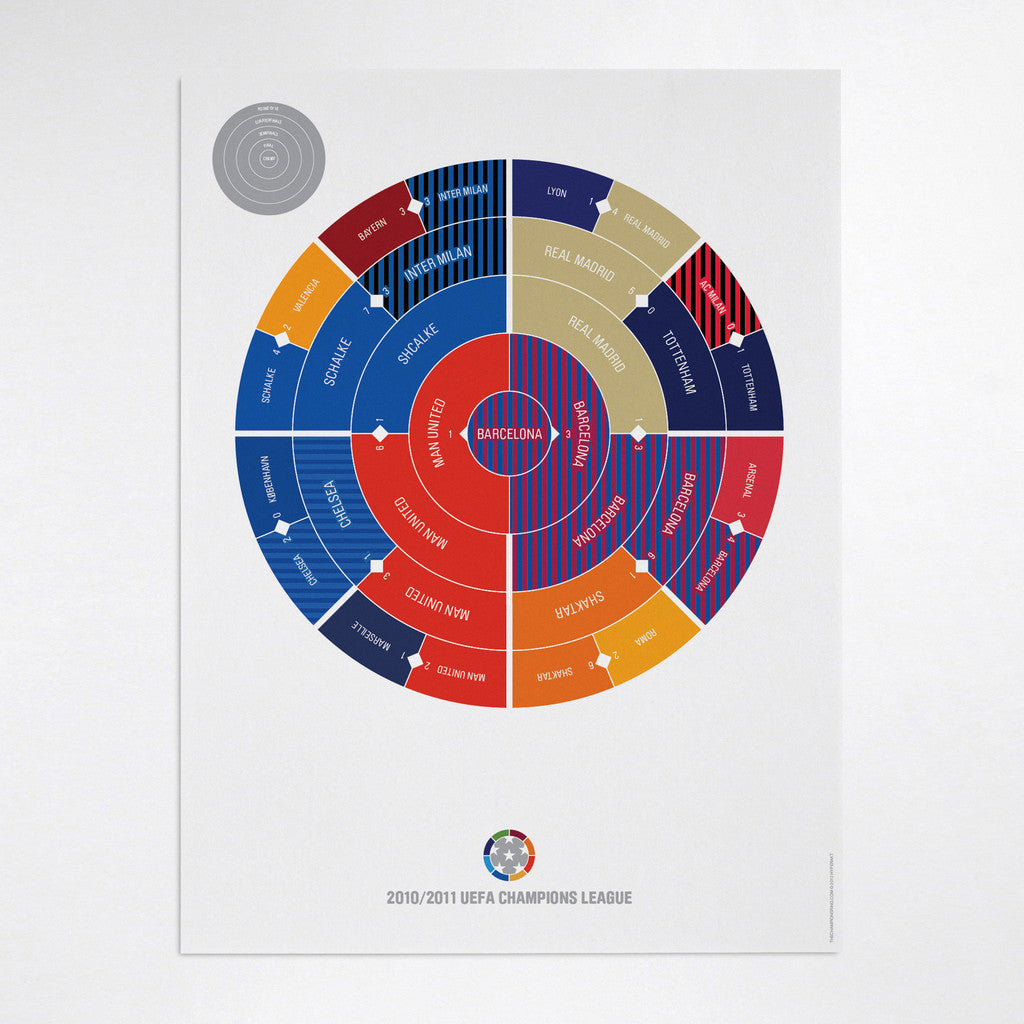 This print captures the entire 2010/2011 Champions League elimination rounds on a beautiful 18" x 24" art print. It's the perfect gift for Barça fans.