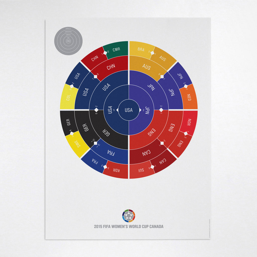 This print captures the entire 2015 Women's World Cup elimination rounds on a beautiful 18" x 24" art print. It's the perfect gift for USA fans.