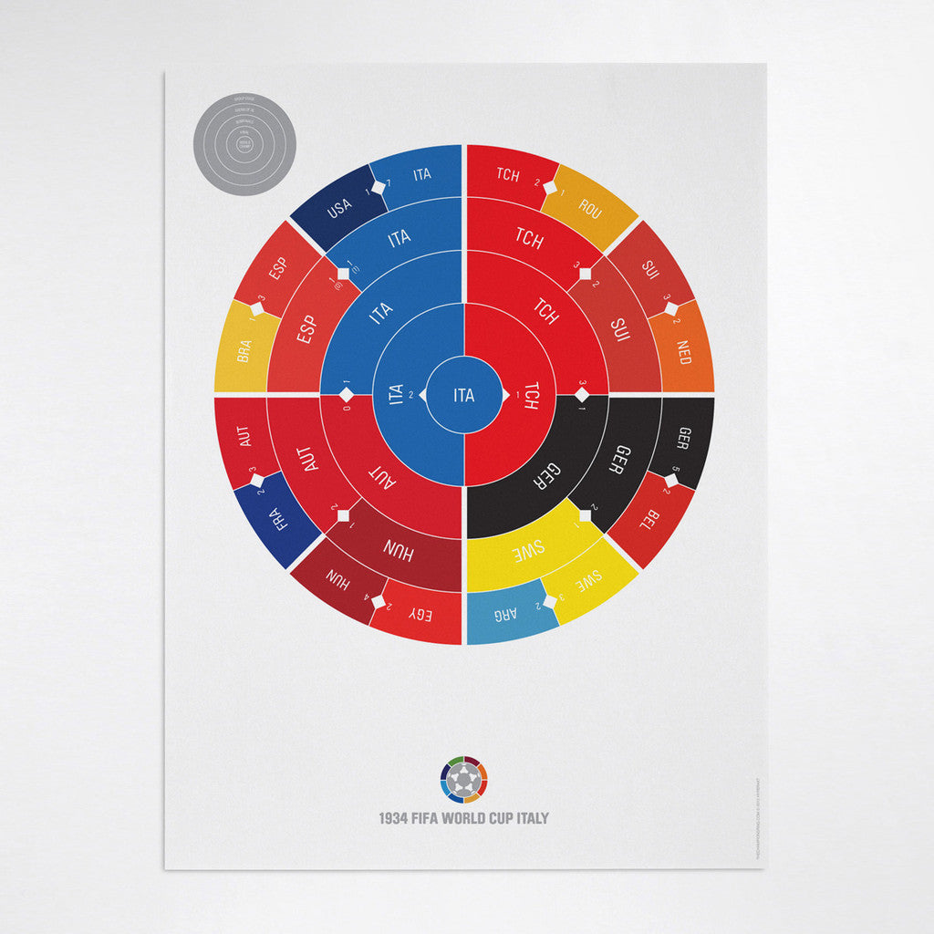 This print captures the entire 1934 World Cup elimination rounds on a beautiful 18" x 24" art print. It's the perfect gift for Italy fans.