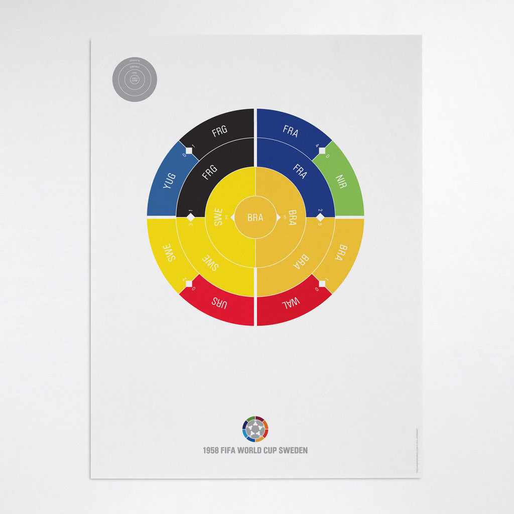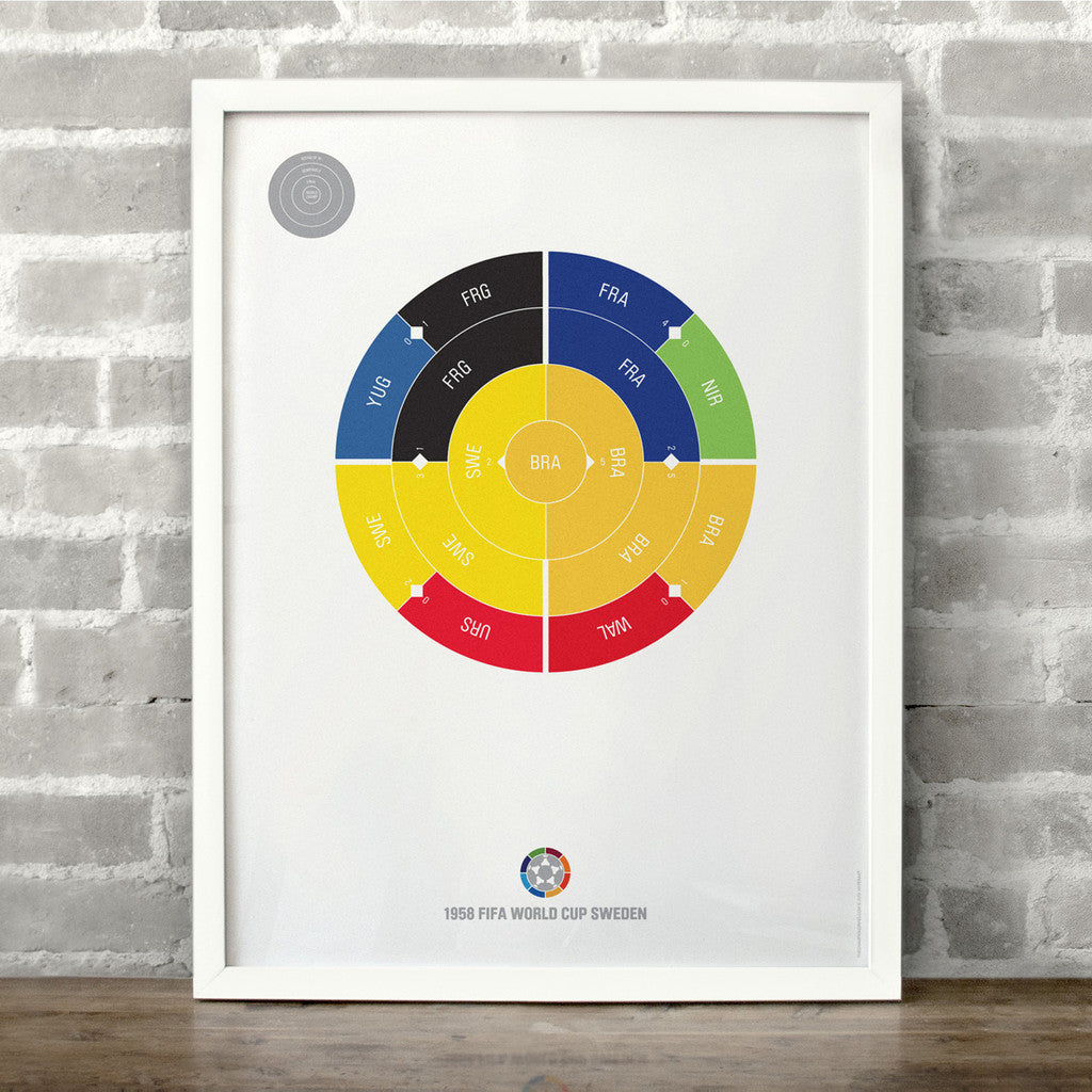This print captures the entire 1958 World Cup elimination rounds on a beautiful 18" x 24" art print. It's the perfect gift for Brazil fans.