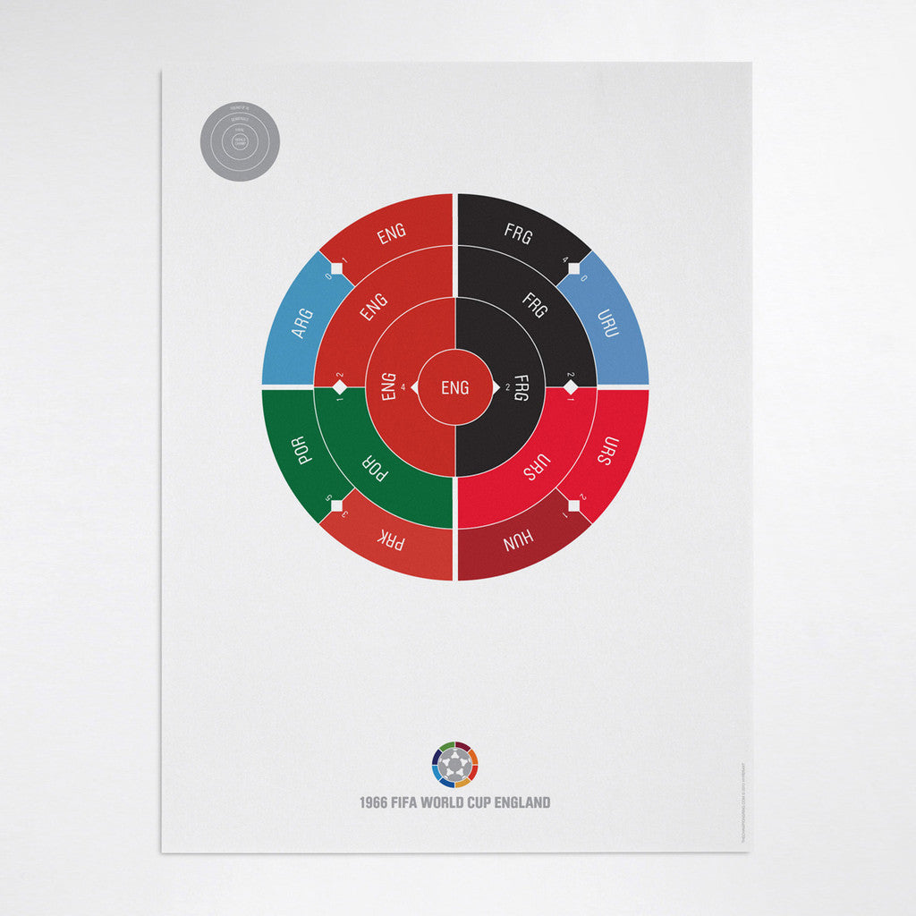 This print captures the entire 1966 World Cup elimination rounds on a beautiful 18" x 24" art print. It's the perfect gift for England fans.