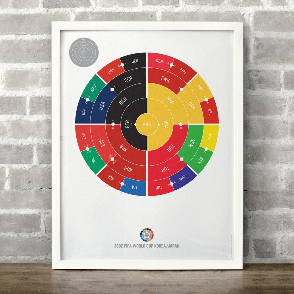 This print captures the entire 2002 World Cup elimination rounds on a beautiful 18" x 24" art print. It's the perfect gift for Brazil fans.
